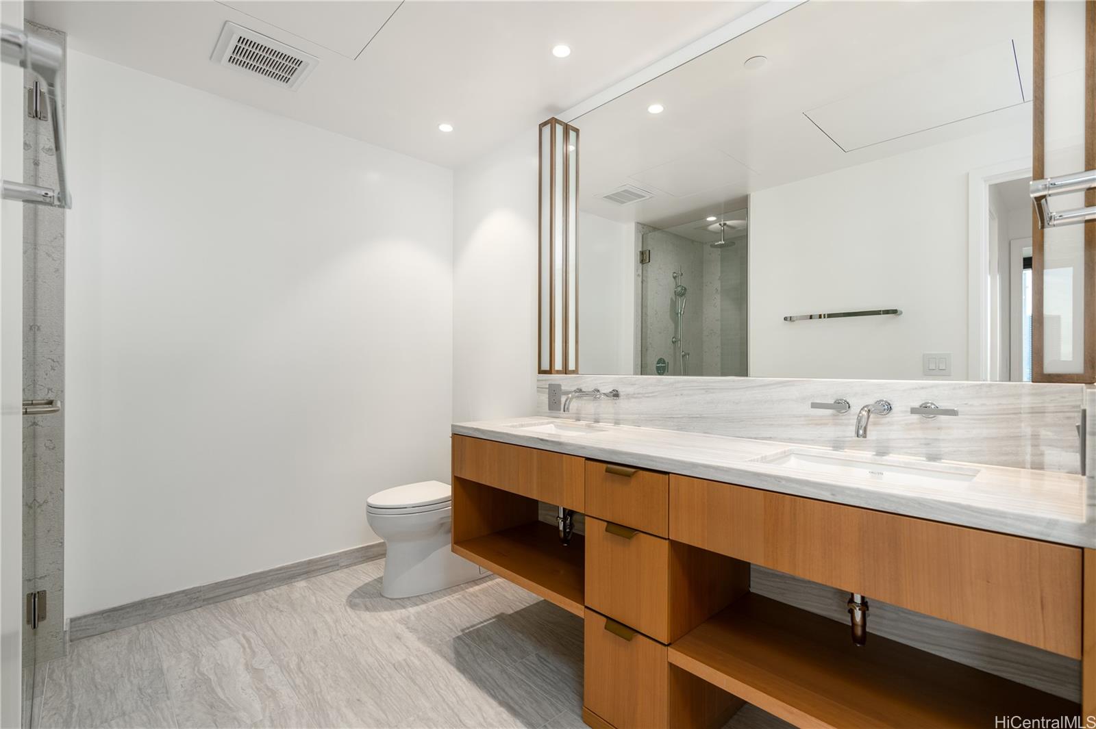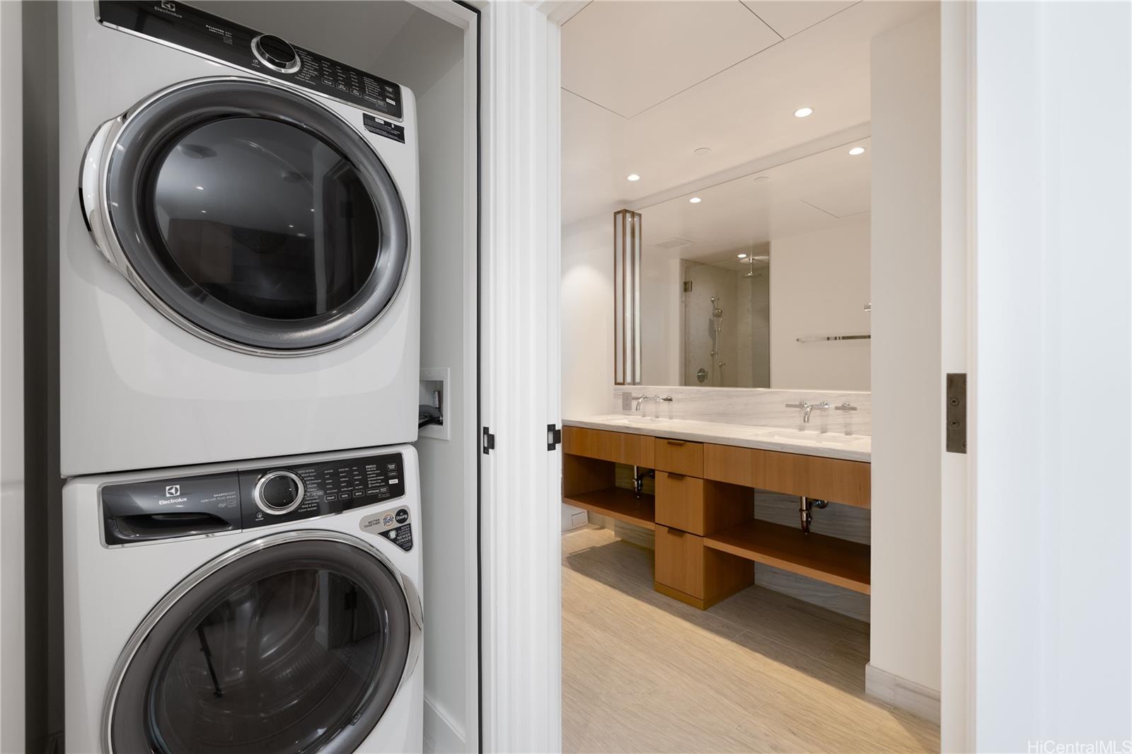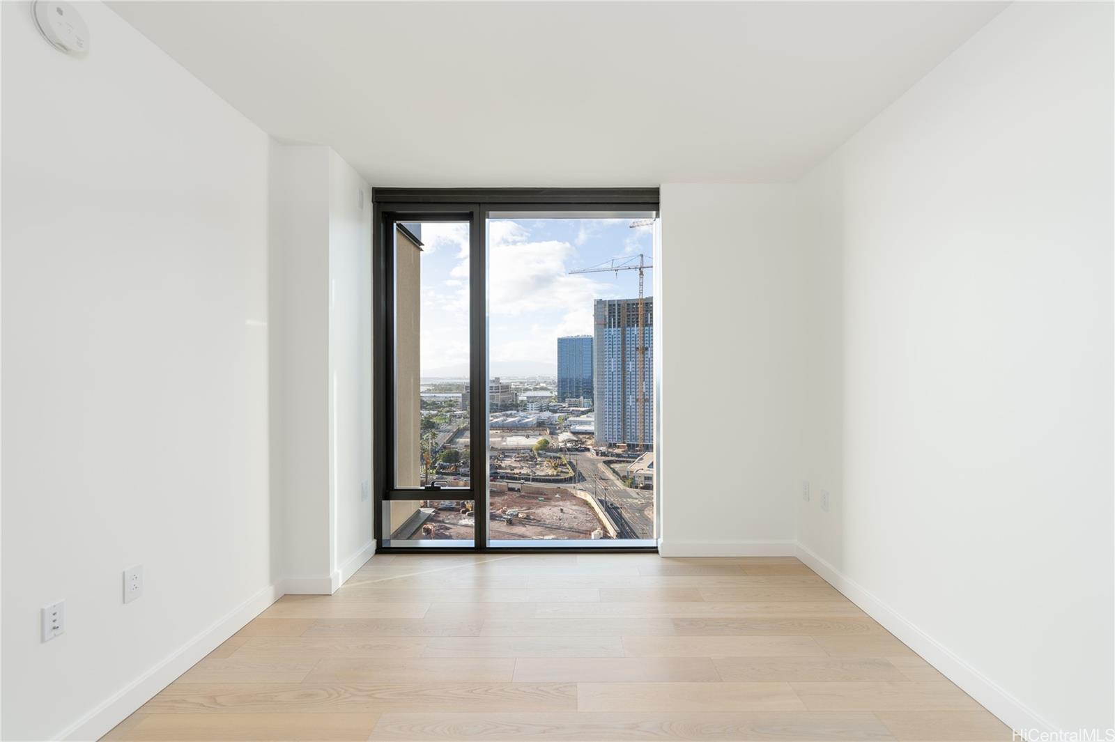 This exquisite 1-bedroom, 1-bath unit, 1 parking boasts Ocean and Kewalo Boat Harbor view and Beautiful sunset every day. The open-concept kitchen features sleek light wood cabinetry and textured glass accents, top-of-the-line Subzero appliances and a Wolf gas cooktop and oven.