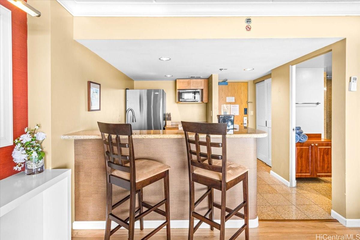 象徴的なイリカイ・アパートメント・ビルディングにある、合法的な短期日貸し物件という、この類まれな投資機会をお見逃しなく。明るく手入れの行き届いたこの1ベッドルーム、1バスルームの住居は、約500平方フィートの室内居住スペースに加え、広々とした120平方フィートのラナイを備え、屋内と屋外の生活を融合させています。オープンキッチン、個別空調、家具付きで、すぐに居住または賃貸にご利用いただけます。太平洋、アラモアナビーチパーク、アラワイハーバーのパノラマビューと、息を呑むような夕日をお楽しみください。居住者とゲストは、2つのスイミングプール、フィットネスセンター、敷地内のダイニング、小売店、居心地の良いラウンジエリアなど、リゾートスタイルのアメニティをご利用いただけます。ワイキキとアラモアナのビーチ、公園、アラモアナセンター、ヒルトンラグーン、そして数多くのダイニング、ショッピング、エンターテイメント施設、銀行や食料品店などの日常生活に必要な施設まで、理想的なロケーションです。イリカイは、その絶好のロケーションと歴史的な魅力で知られています。セカンドハウスとして最適で、不在時には合法的な短期賃貸収入を得ることも可能です。ぜひ一度ご覧になって、その魅力を実感してください!