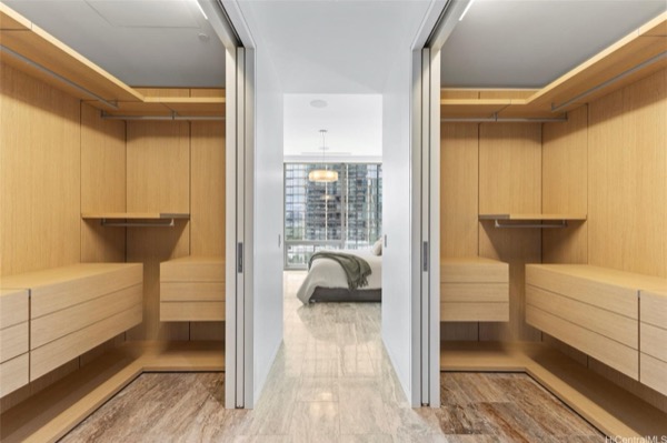 メインスイートには左右振り分け式のウォークインクローゼットが2つついています。そのほかにも大型のストレージも別途付属しているので、収納で困ることはこのユニットでは無縁ですね。