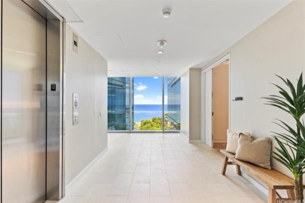 そしてこちらのユニット特筆すべきなのが、専用エレベーターホール付きであること。プライバシーと安全性を重視する方には最適の作りです。これも高層コンドミニアムでありながら、171戸のみというワイエアならではエクスクルーシブさがあってこそ。