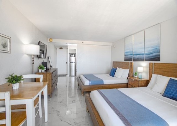 フルサイズのダブルベッドが2台設置されており、最大3名様まで宿泊可能です。質の高いベッドリネンと快適なマットレスで、ハワイでの疲れをしっかりと癒すことができます。