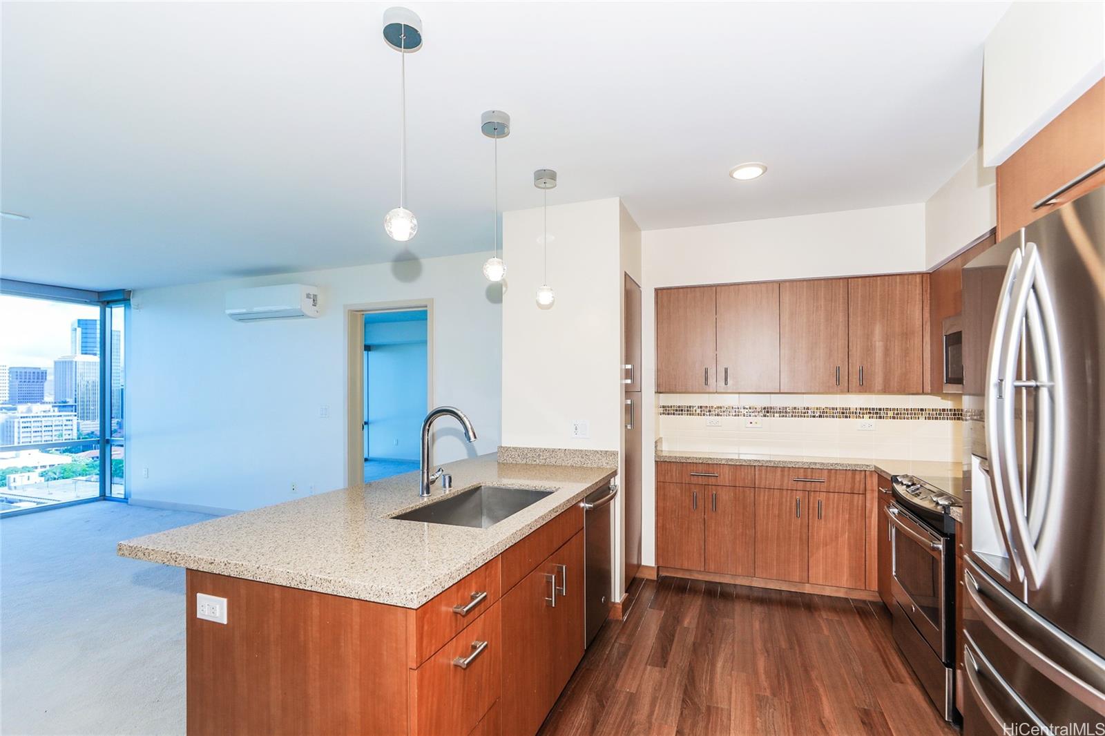 Exceptional price for this spacious 2-bedroom, 2-bathroom Unit with 2 large, assigned, side-by-side parking stalls at Keauhou Place in Kaka'ako, Honolulu, a contemporary high-rise. This modern unit features an open floor plan, with floor-to-ceiling windows, private lanai, allowing residents to enjoy breathtaking city, ocean, and mountain views. High-end finishes include European-style cabinetry, quartz countertops, and energy-efficient appliances. The building provides resort-style amenities such as a swimming pool, jacuzzi, fitness center, BBQ areas, and recreational rooms. Its prime location in the heart of Kaka'ako offers easy access to SALT at Our Kaka'ako, Ala Moana Shopping Center, Down to Earth, H-Mart and various dining and entertainment options. With its blend of luxury, convenience, and modern design, Keauhou Place is ideal for those seeking an urban island lifestyle. 100% hurricane insurance coverage. Smoke free building. Pet Friendly. Secure Buiilding. 3D Virtual Tour available.