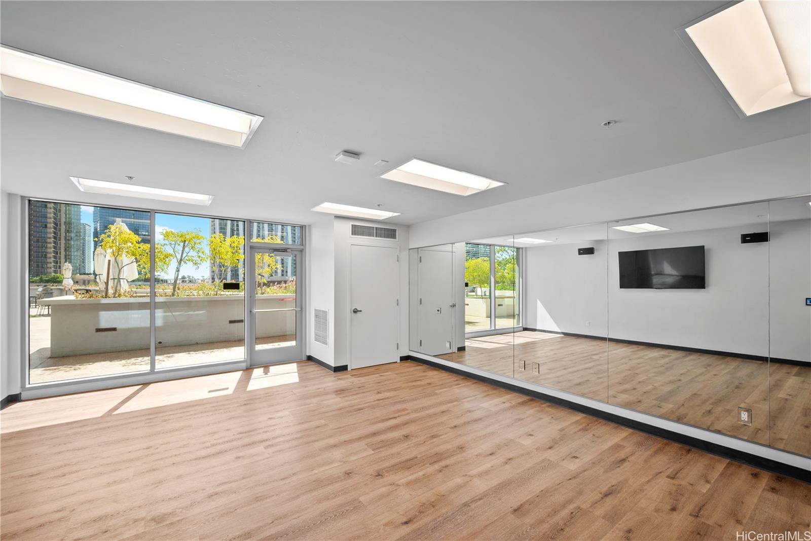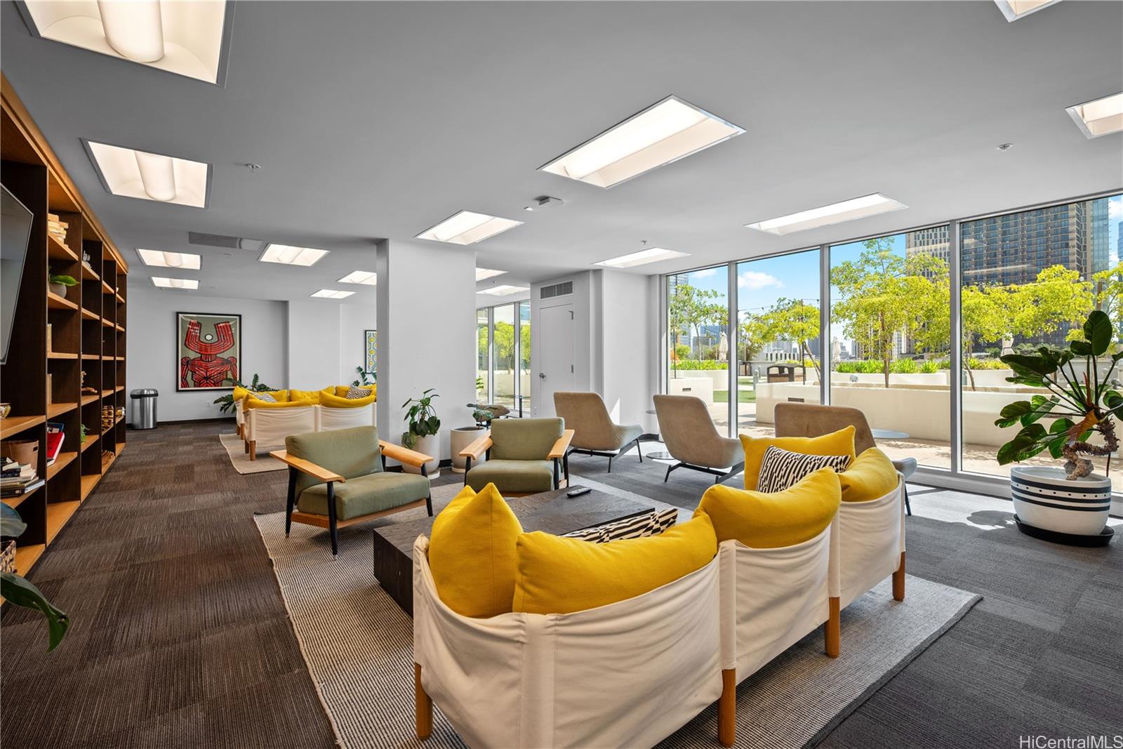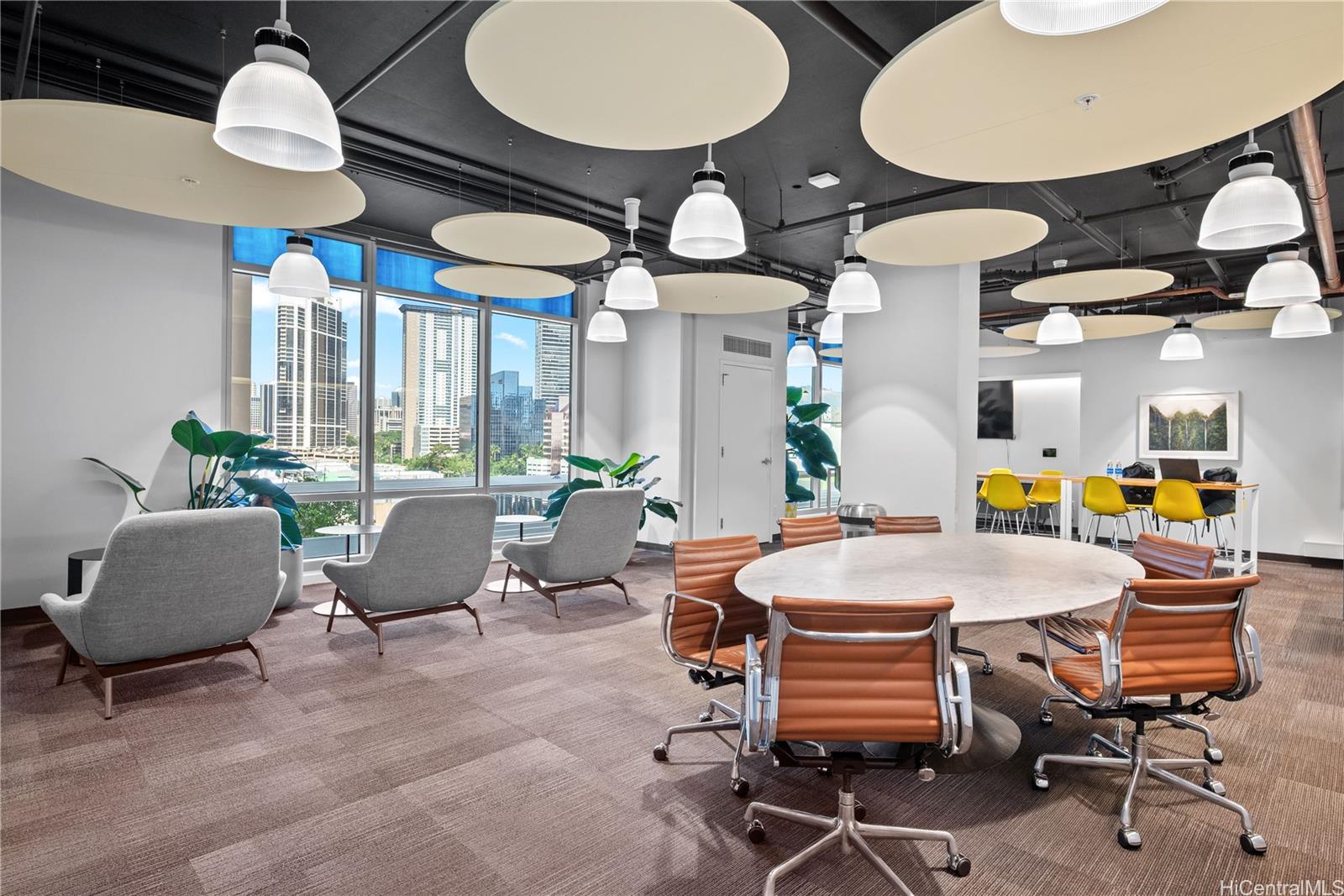 Enjoy Life on the Top Floor! Experience modern urban living in this beautifully upgraded penthouse residence, featuring 9-foot ceilings, luxury vinyl flooring throughout, motorized blinds and custom lighting. The open-concept layout includes a spacious living room, stylish kitchen island with upgraded kitchen backsplash, upgraded bathroom tile and cabinetry, smart toilets, and a custom-built desk and storage system in the primary bedroom. Stay comfortable year-round with split A/C units in every room. Located in the heart of Ward Village, you’re just minutes away from Whole Foods, movie theaters, popular restaurants, and Ala Moana Beach Park. Amenities galore, including a bbq area, recreation and karaoke rooms, conference and theater rooms, outdoor playground, children’s playroom, fitness center, yoga room, and more. Enjoy added convenience with a spacious storage room right down the hall, an additional storage locker on the 3rd floor (same level as your parking), and two full-size, side-by-side parking stalls. Move-in ready—your penthouse lifestyle awaits!