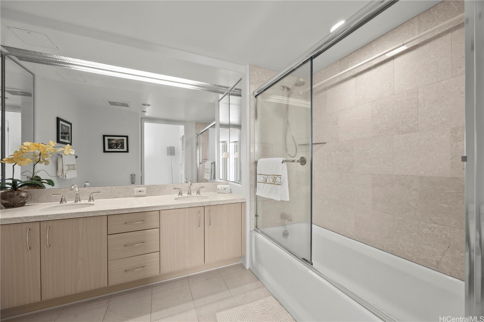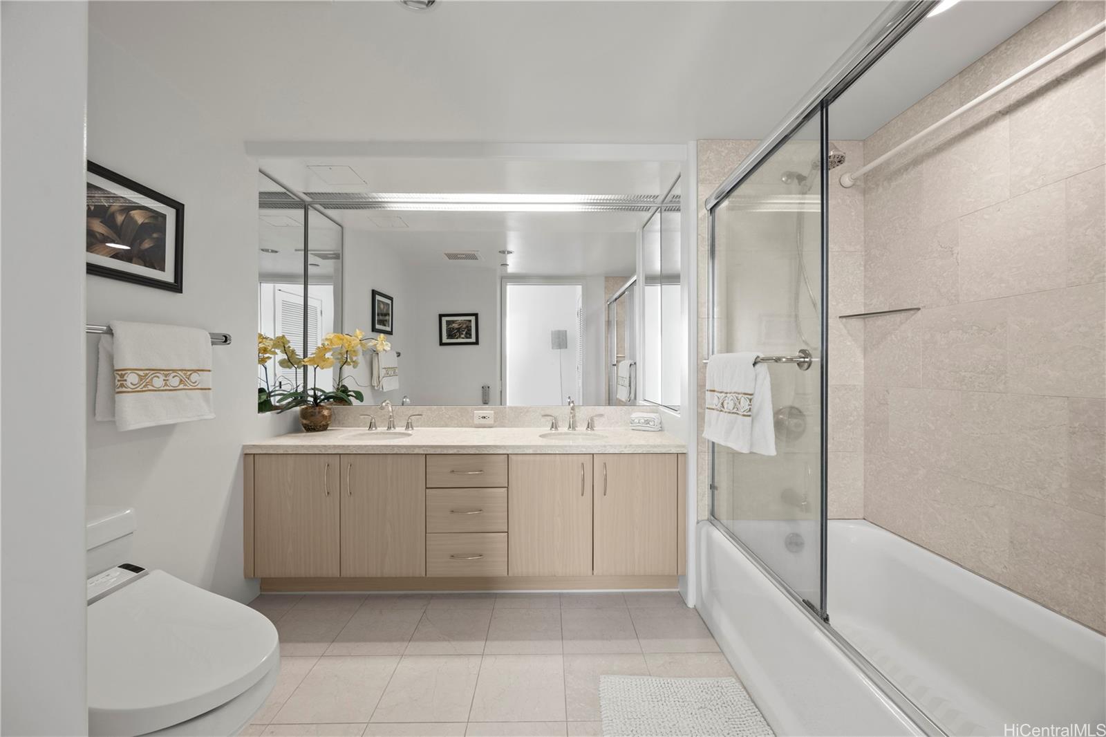 This two-bedroom, two-bathroom unit is located in one of the premier locations in Honolulu.