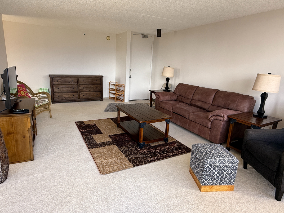 1ベッドルーム)、1バス、家具付き、駐車場1台分付き(屋根付き)