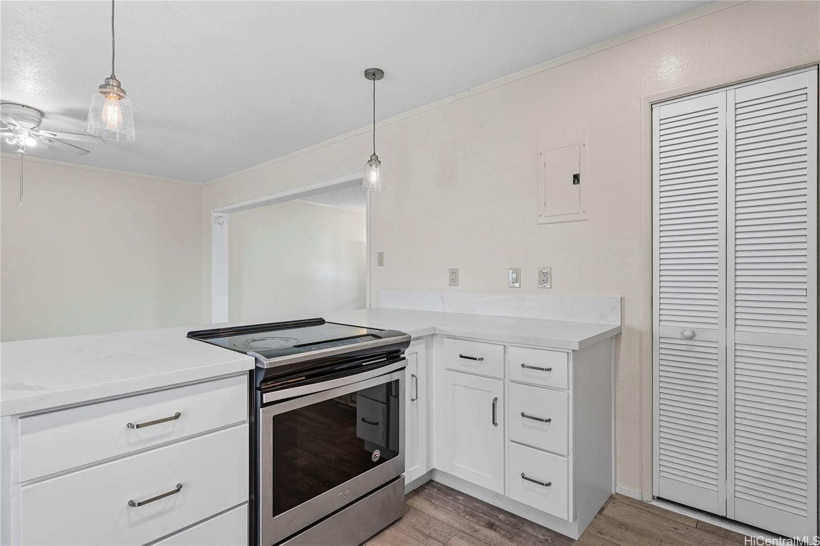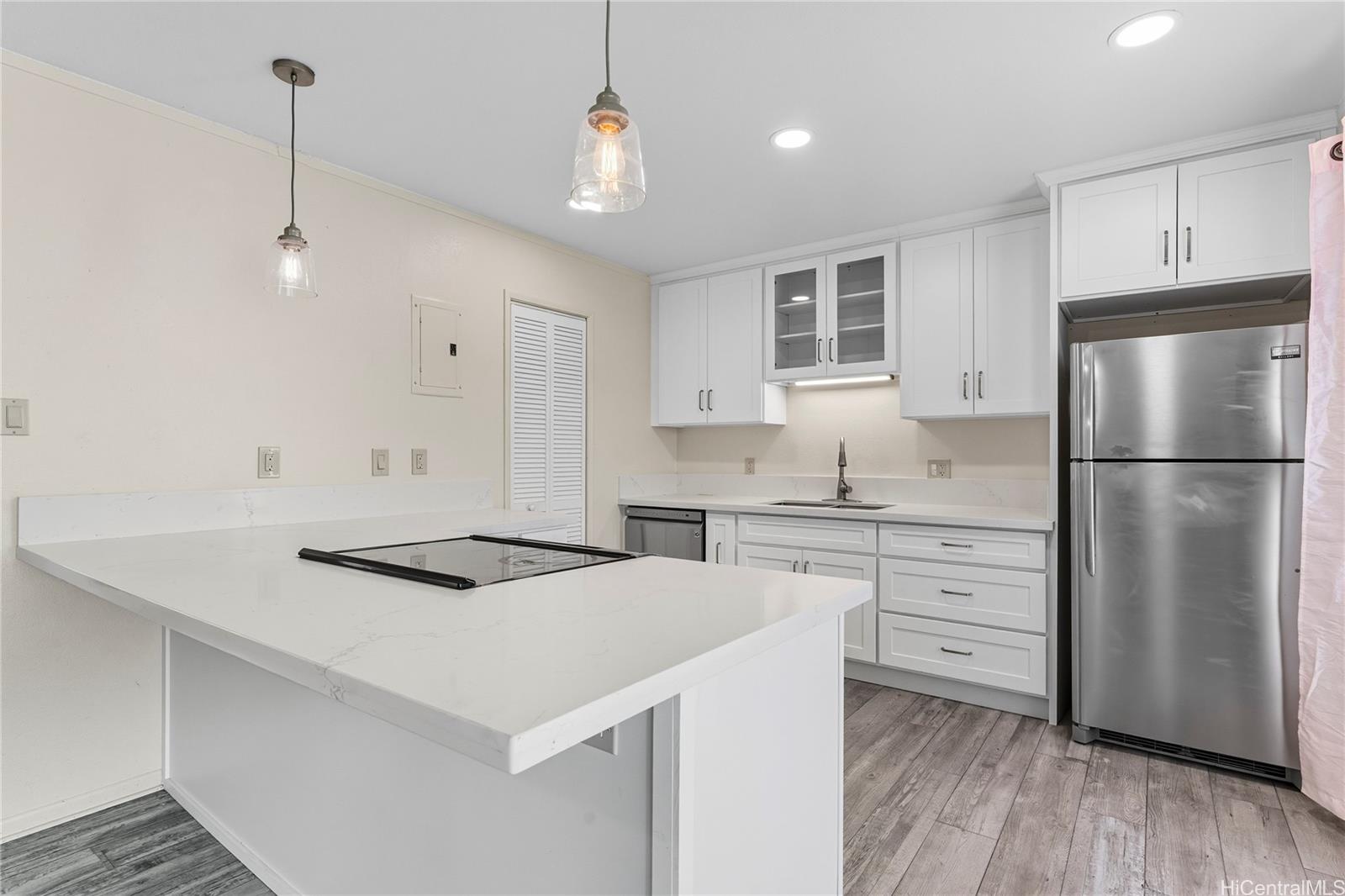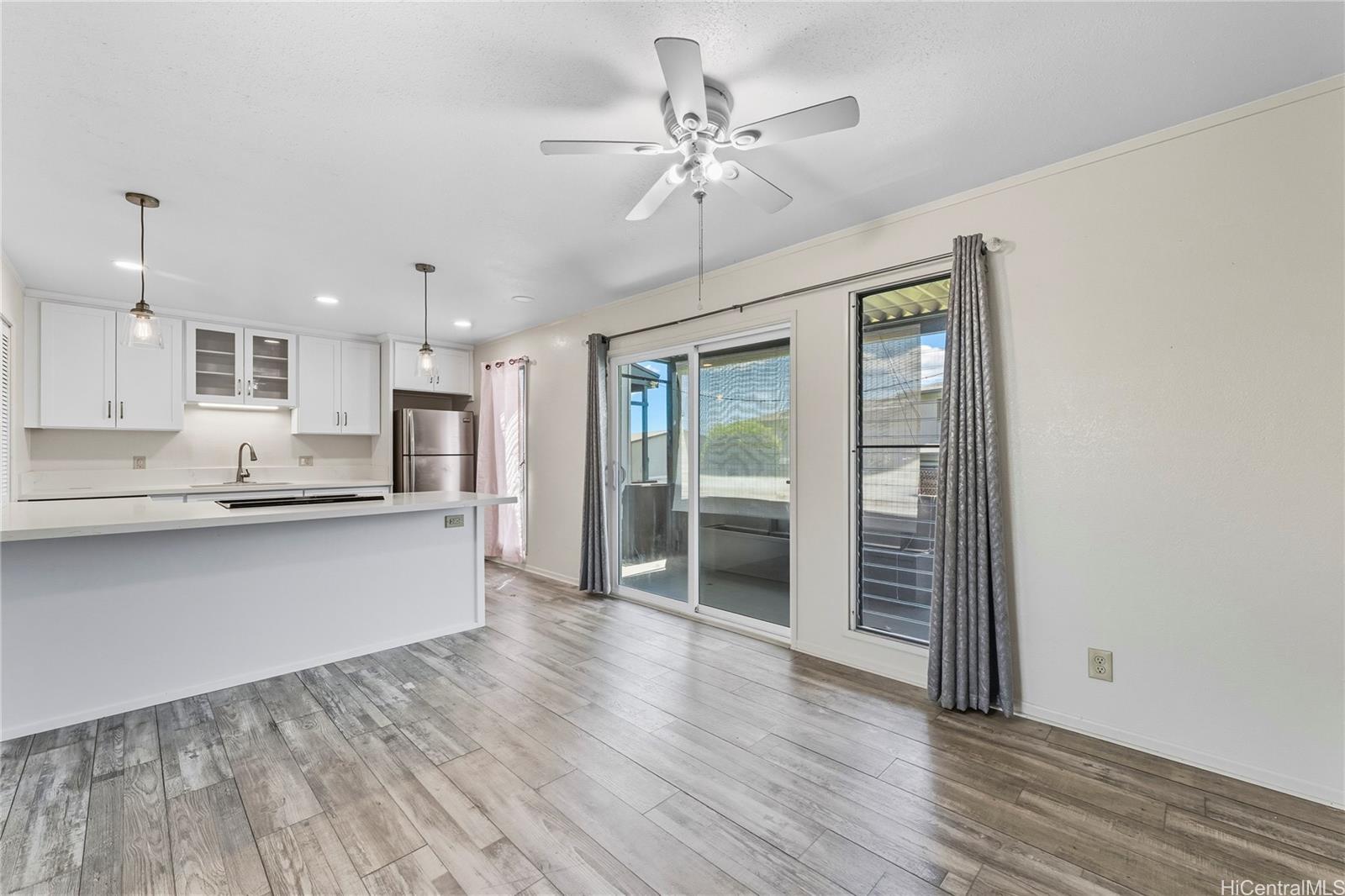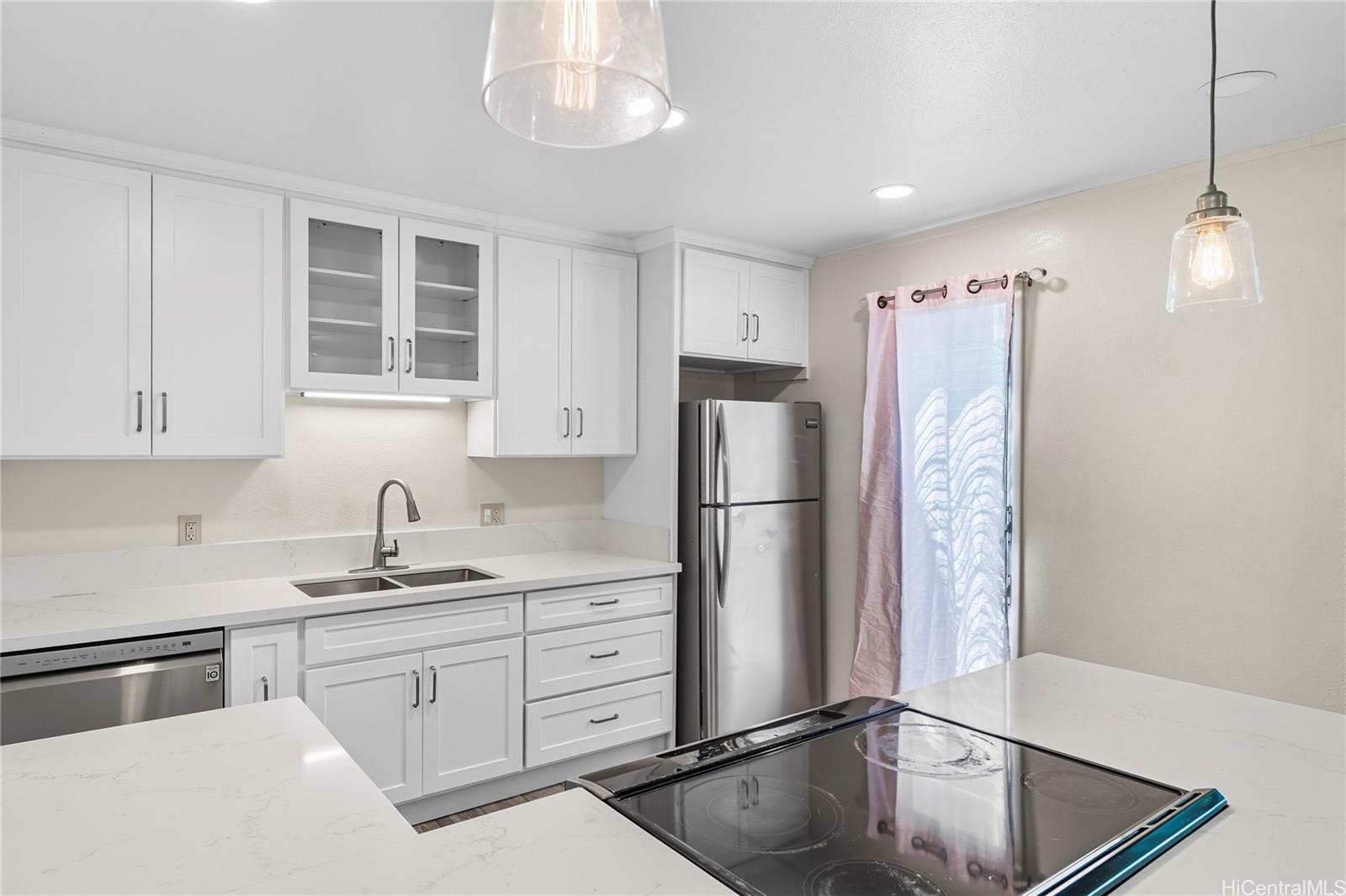 Well-maintained 3-bedroom, 1.5-bath townhouse in the highly desired Waiau Gardens community! This two-story home features a functional layout with spacious living areas, 2 assigned parking stalls, and a private covered lanai. The kitchen is equipped with an electric stove/oven, refrigerator, dishwasher, and disposal, plus a full-sized washer and dryer for added convenience. Interior finishes include carpet and laminate flooring. Enjoy community amenities like a swimming pool and the convenience of nearby shopping centers, restaurants, schools, and bus lines