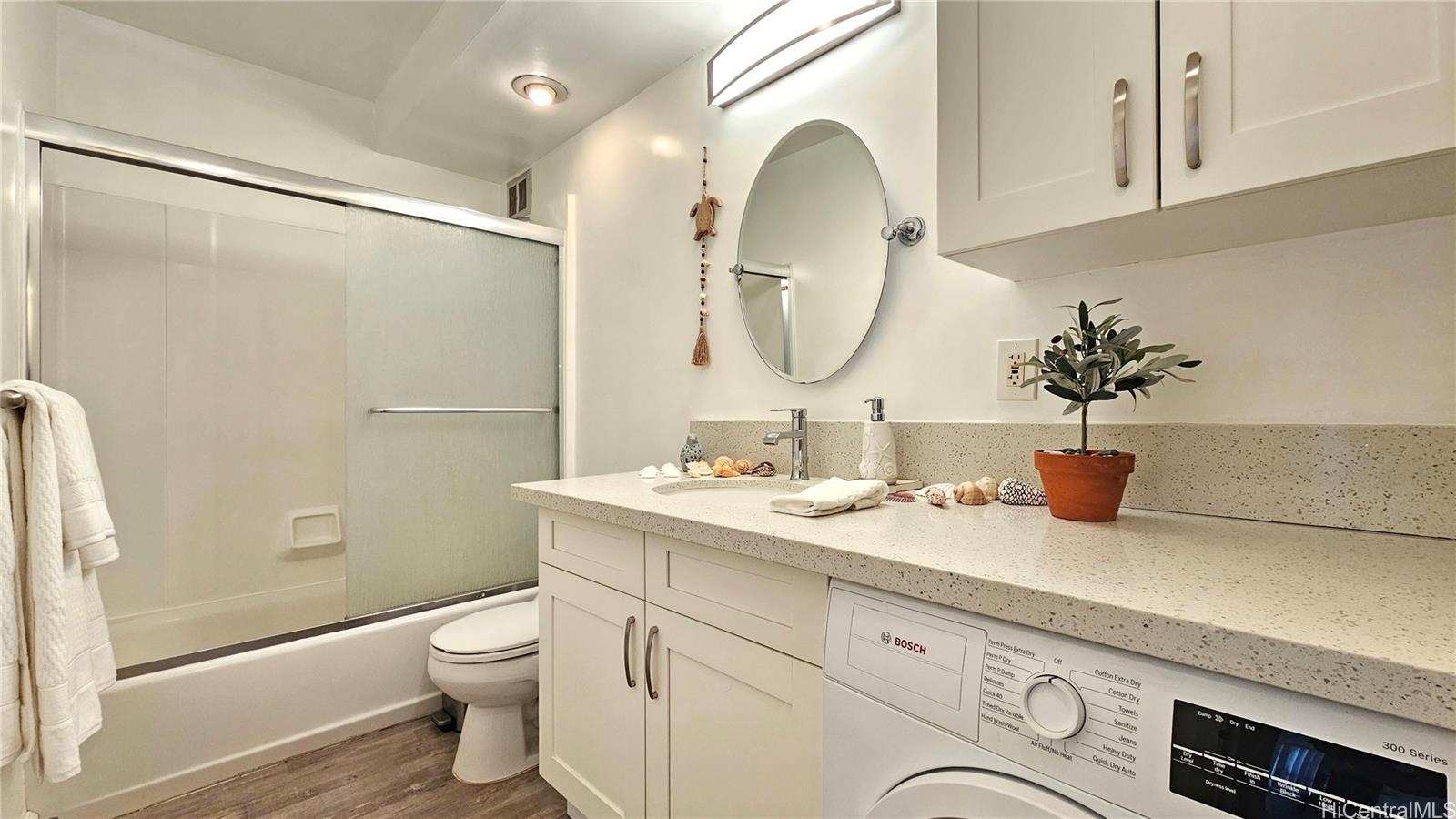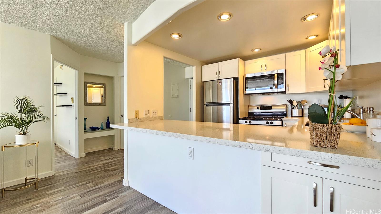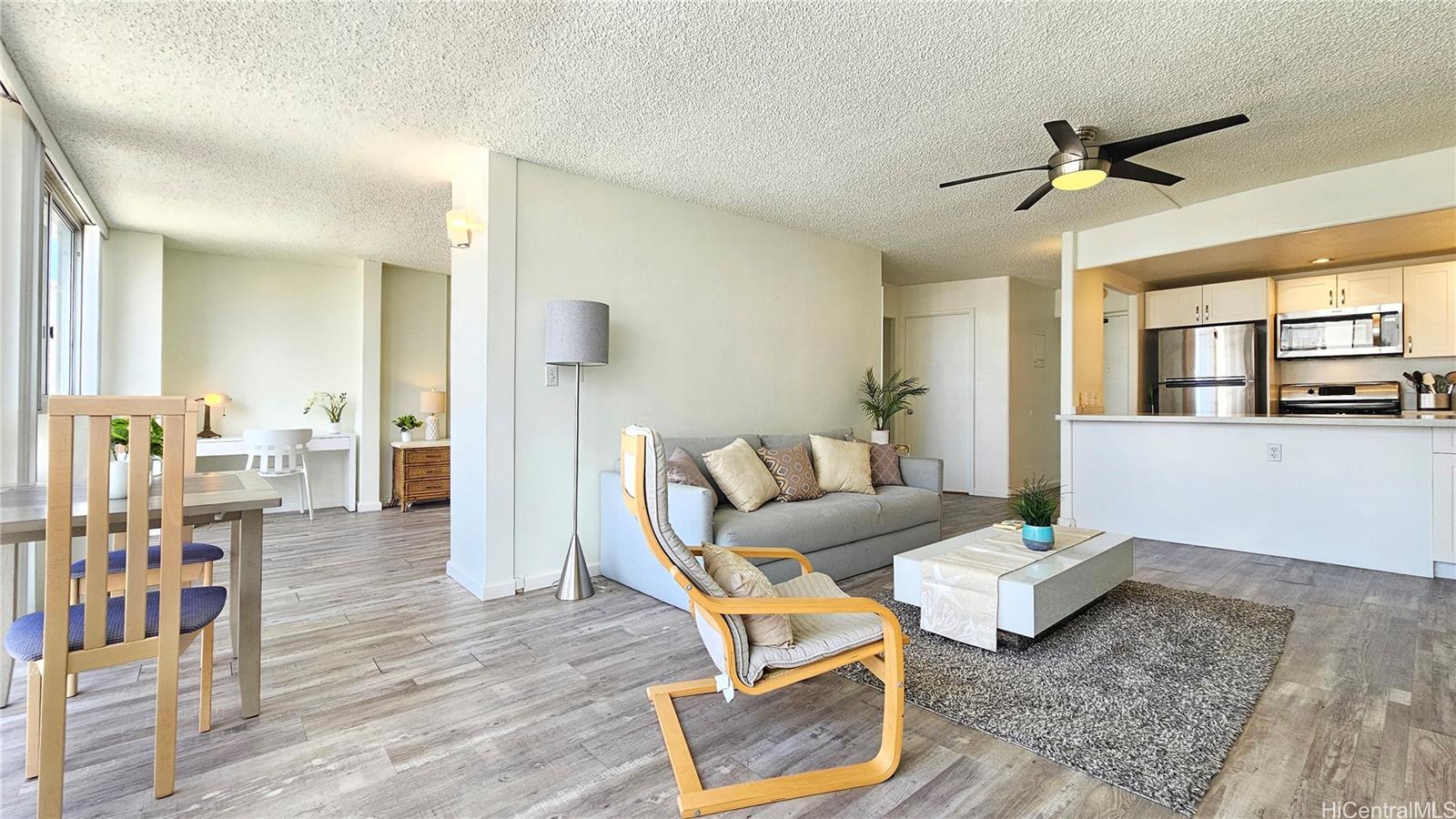The price was improved again! 1-bed, 1-bath with 2 Parking Stalls at $395,000! Enclosed Lanai makes this room a large 768sq.ft. comfortable living space. Side-by-side Washer/Dryer (2025) are placed under the redesigned bathroom counter. Kitchen appliances are about 4 years old and has beautiful vinyl wood floors throughout. Also it has newer blinds and screens for large windows with high quality ACs. Beautiful white cabinets and crystal quartz countertops in the kitchen and the bathroom make this room bright and airy. In the very close vicinity of world famous Ala Moana Shopping Center, Hawaii Convention Center, Waikiki hotels and beaches!! Not a large building, but many amenities for you to enjoy and relax - a rooftop pool with great view of ocean, mountains and Waikiki, BBQ area, men's & women's sauna and a tennis court. Atkinson Plaza has 100% hurricane insurance coverage now and Common Drain Lines were replaced in 2015. Also, the maintenance fee includes the cost for the upcoming sprinkler system installation.