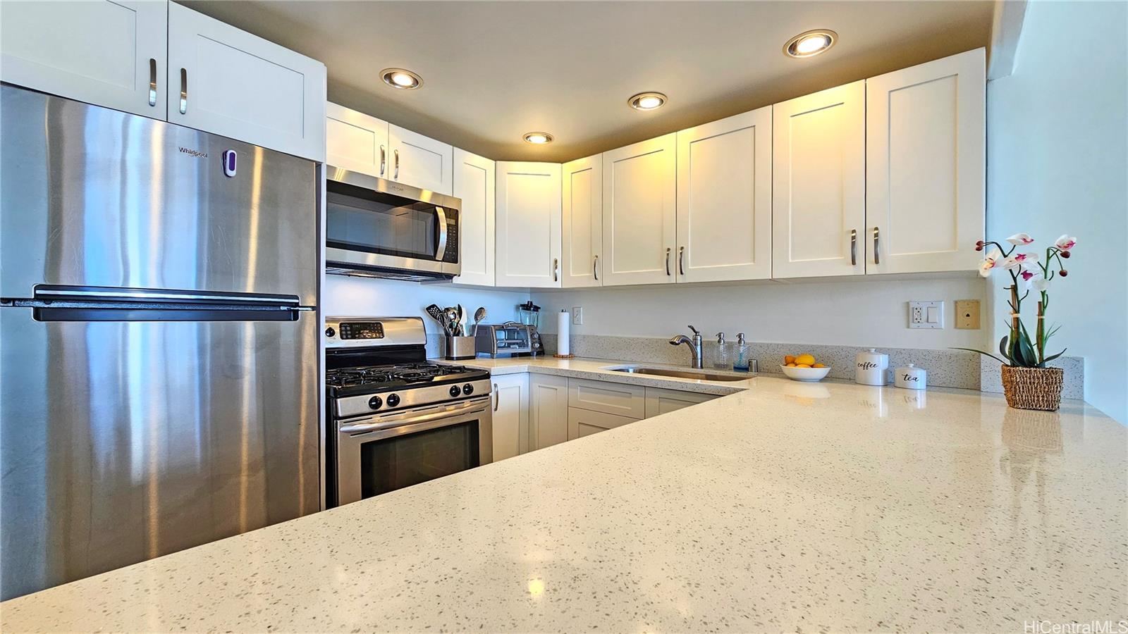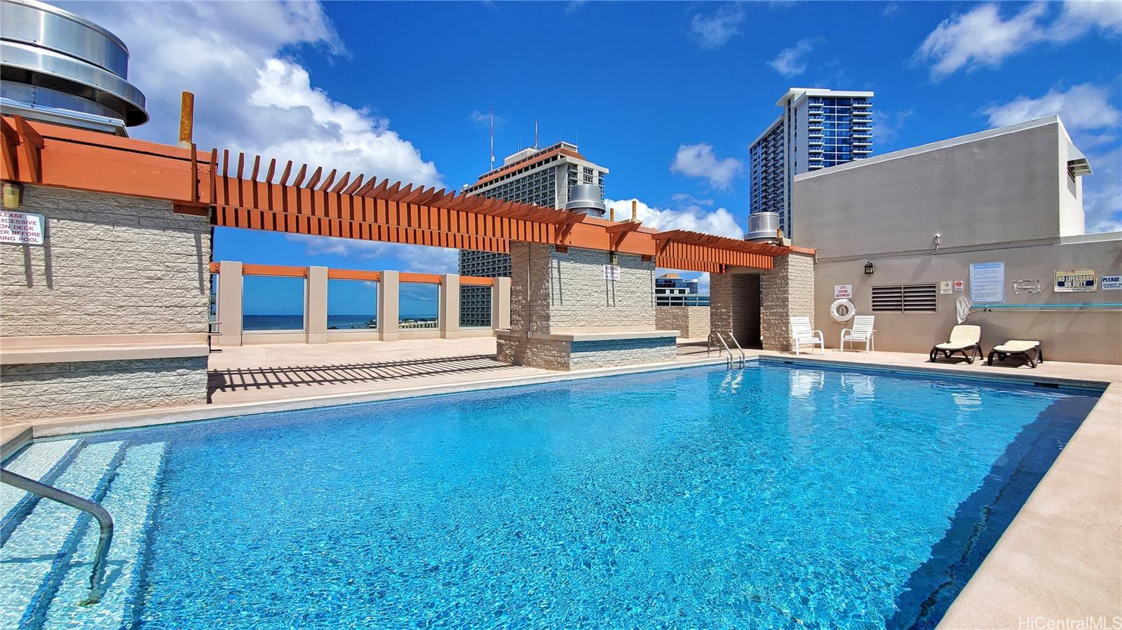 またもや価格が値下げされました!1ベッドルーム、1バスルーム、2台駐車可能で$395,000!囲い付きのベランダがこの部屋を768平方フィートの広々とした快適な居住空間にしています。並列型の洗濯機/乾燥機(2025)は、改装されたバスルームのカウンター下に設置されています。キッチン家電は約4年前のもので、全体に美しいビニール製のフローリングが敷かれています。また、大きな窓には新しいブラインドとスクリーン、高品質のエアコンが付いています。キッチンとバスルームの美しい白いキャビネットとクリスタルクォーツのカウンタートップがこの部屋を明るく風通しの良いものにしています。世界的に有名なアラモアナショッピングセンター、ハワイコンベンションセンター、ワイキキのホテルやビーチのすぐ近くです!大きな建物ではありませんが、海、山、ワイキキの素晴らしい景色を望む屋上プール、バーベキューエリア、男女別サウナ、テニスコートなど、楽しんでリラックスできる設備がたくさんあります。アトキンソン プラザは現在、ハリケーン保険に100%加入しており、共通排水管は2015年に交換済みです。また、メンテナンス料金には、今後予定されているスプリンクラー システムの設置費用も含まれています。