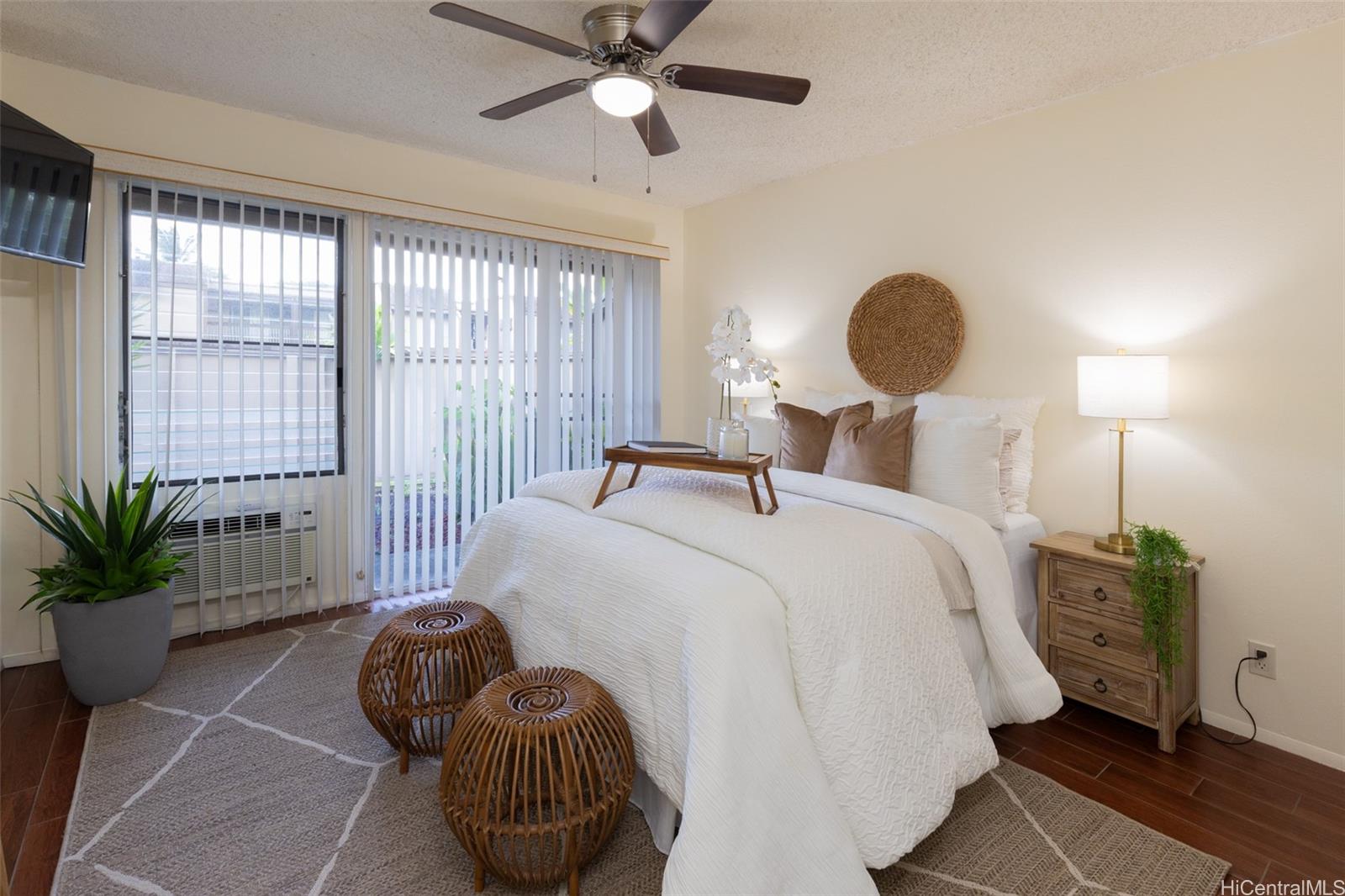 Desirable single level end unit town home with large enclosed courtyard for privacy. Upon entering the complex you are greeted with large mature trees and embraced with nature. The home was recently painted and ready for you to move right in! Ideal for first time homebuyers or someone looking to downsize but still wanting a bit of outdoor space to enjoy. It is pet friendly, two side by side parking stalls, washer and dryer in the unit and many walking paths to enjoy your surroundings. The complex is located approximately 2.5 miles from Windward Mall, shopping, restaurants and H-3 close by. Do not miss this special home!