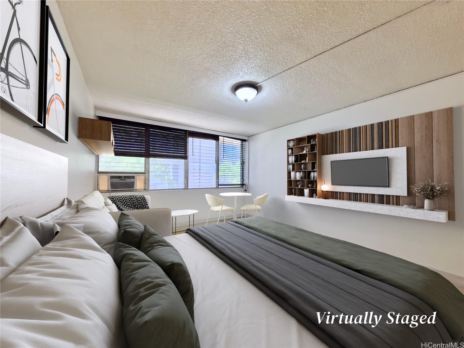 TURN KEY, MOVE-IN CONDITION, FEE SIMPLE. Welcome to Ainahau Gardens! Featuring a charming Studio, 1 Bath condo with a full kitchen. Ideal investment property, a part time vacation getaway, or full time residence. The spacious floor plan provides room for both a sleeping area and a comfortable living space, with plenty of cabinet and storage space. Window AC to keep you cool. Conveniently located in the middle of Waikiki. Walking distance to everything that Waikiki has to offer (beach, surfing, bus line, shopping, eateries, night life, golf, International Marketplace, Kapiolani Park & more). Secured building, resident manager, keyed elevator, community laundry, moped/motorcycle parking area, surfboard storage, bicycle rack. Sold AS-IS. ***CLICK ON THE VIRTUAL TOUR LINK TO DO A VIRTUAL WALKTHROUGH***