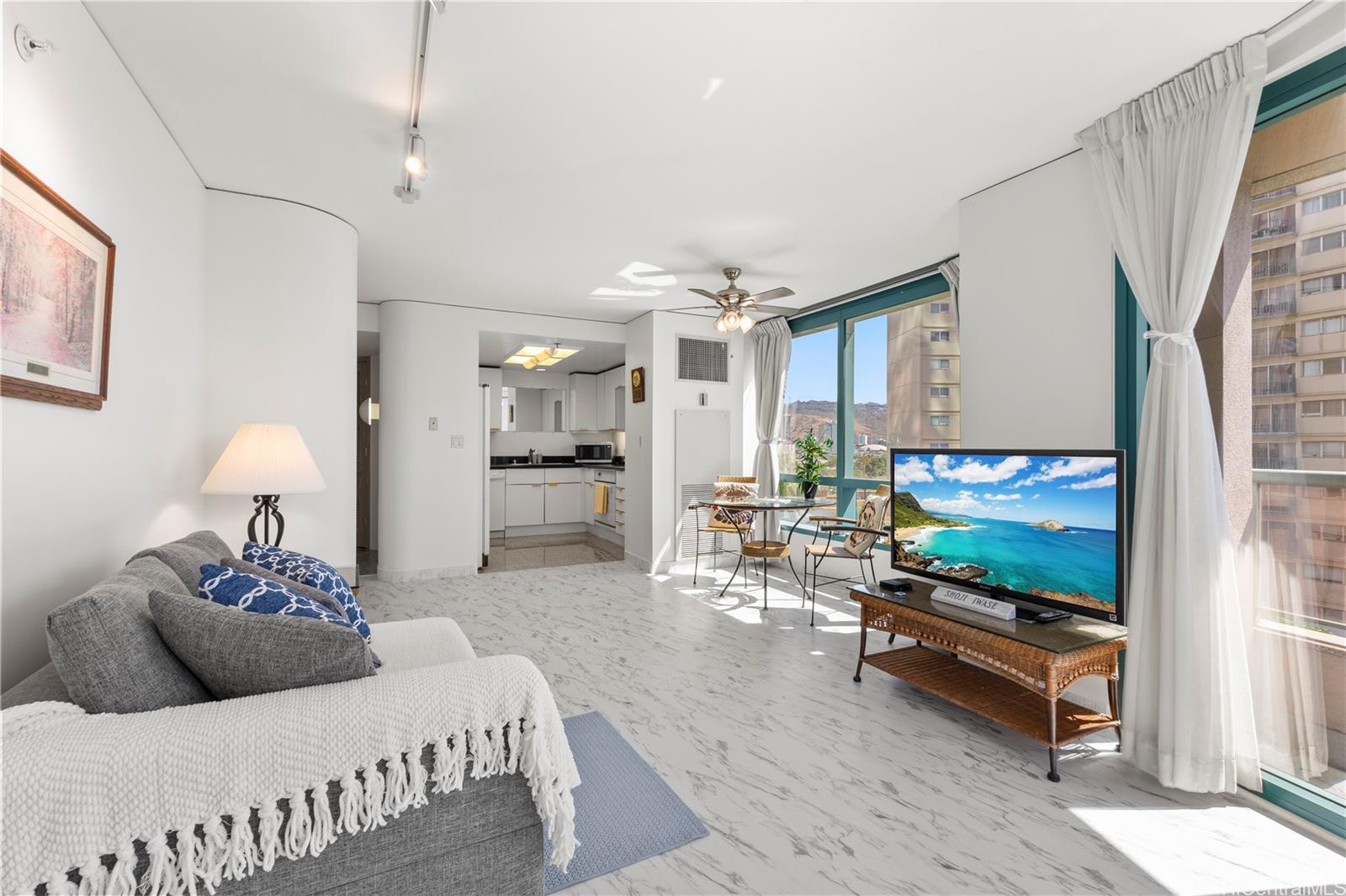 売り出し価格!明るく清潔で広々とした1ベッドルーム、1バスルーム、ラナイ付きの物件が、高級ワイキキランドマークに登場。リビングと寝室のフローリングは最近改装済み、ユニット全体も塗り替え済み。建物には、スパ付き住宅最大級の温水プール、設備の整ったフィットネス施設、カバナ付きバーベキュー施設、洗車場、ゲスト用駐車場、24時間体制のセキュリティなど、充実したアメニティが揃っています。ショッピングやお食事など、世界的に有名なワイキキへのアクセスも抜群です。