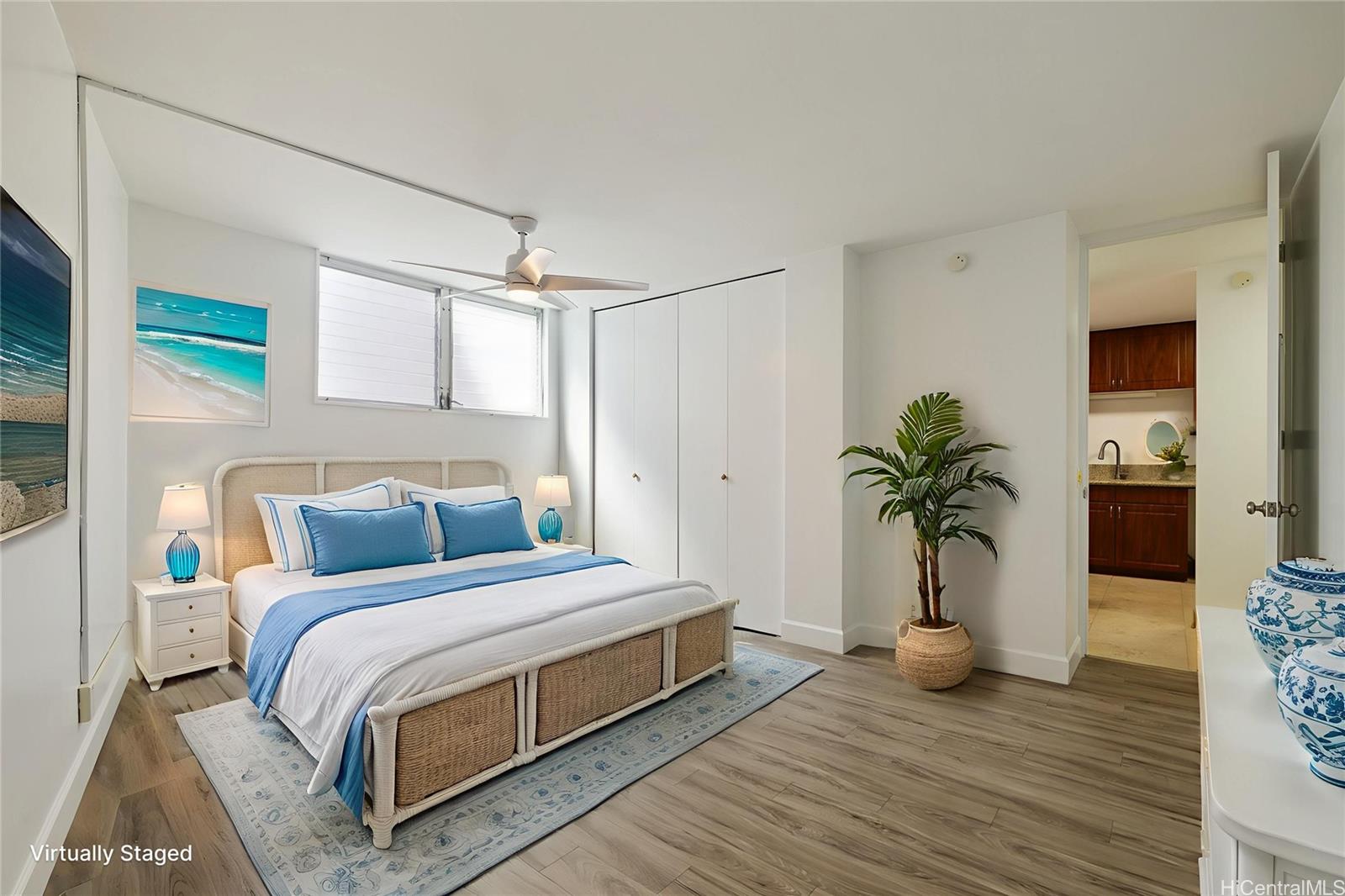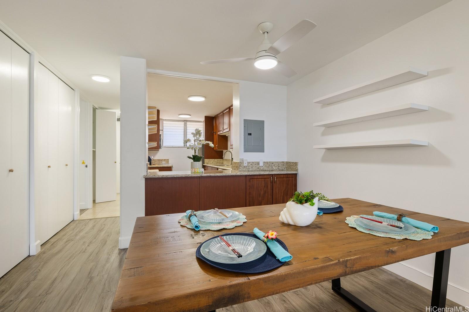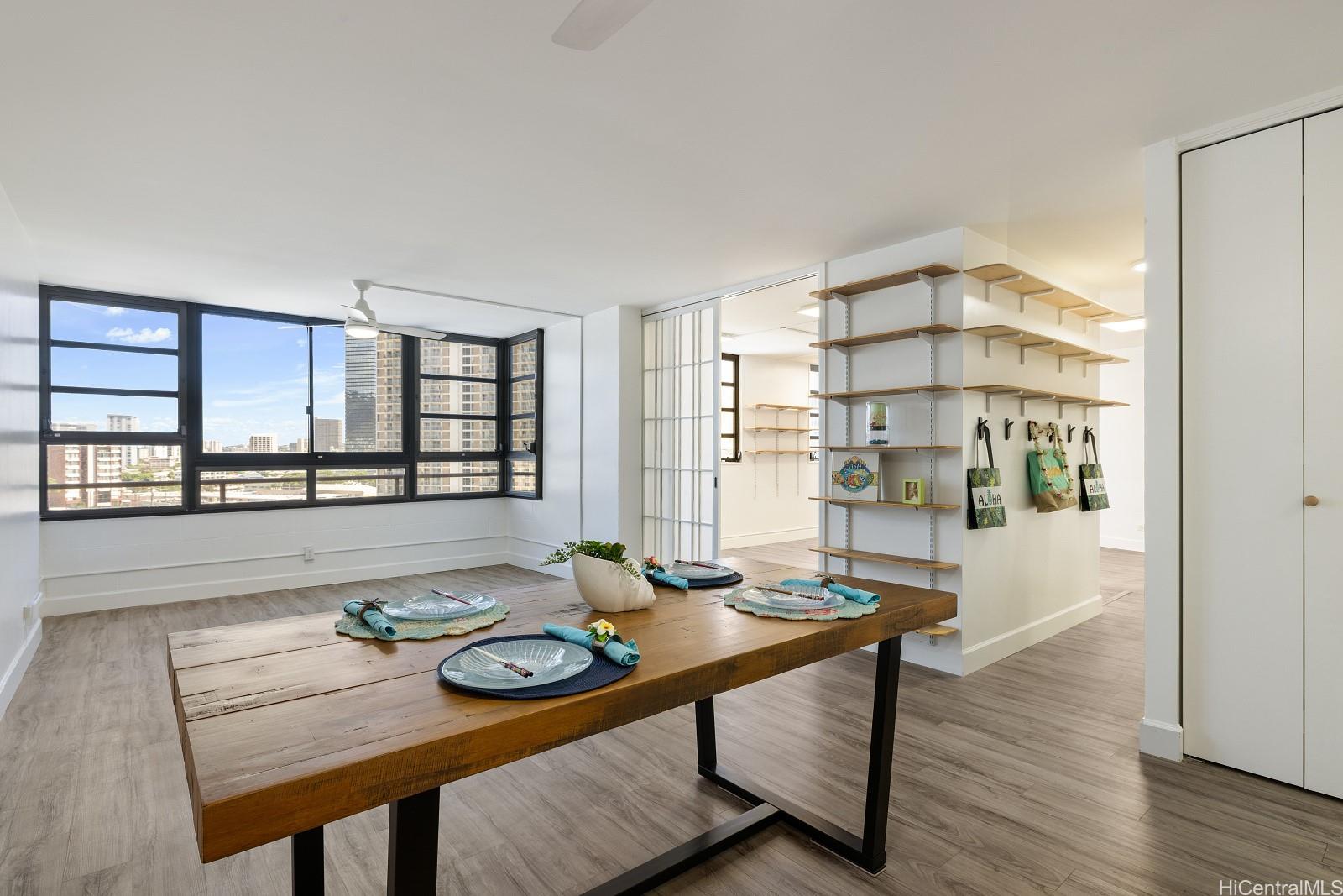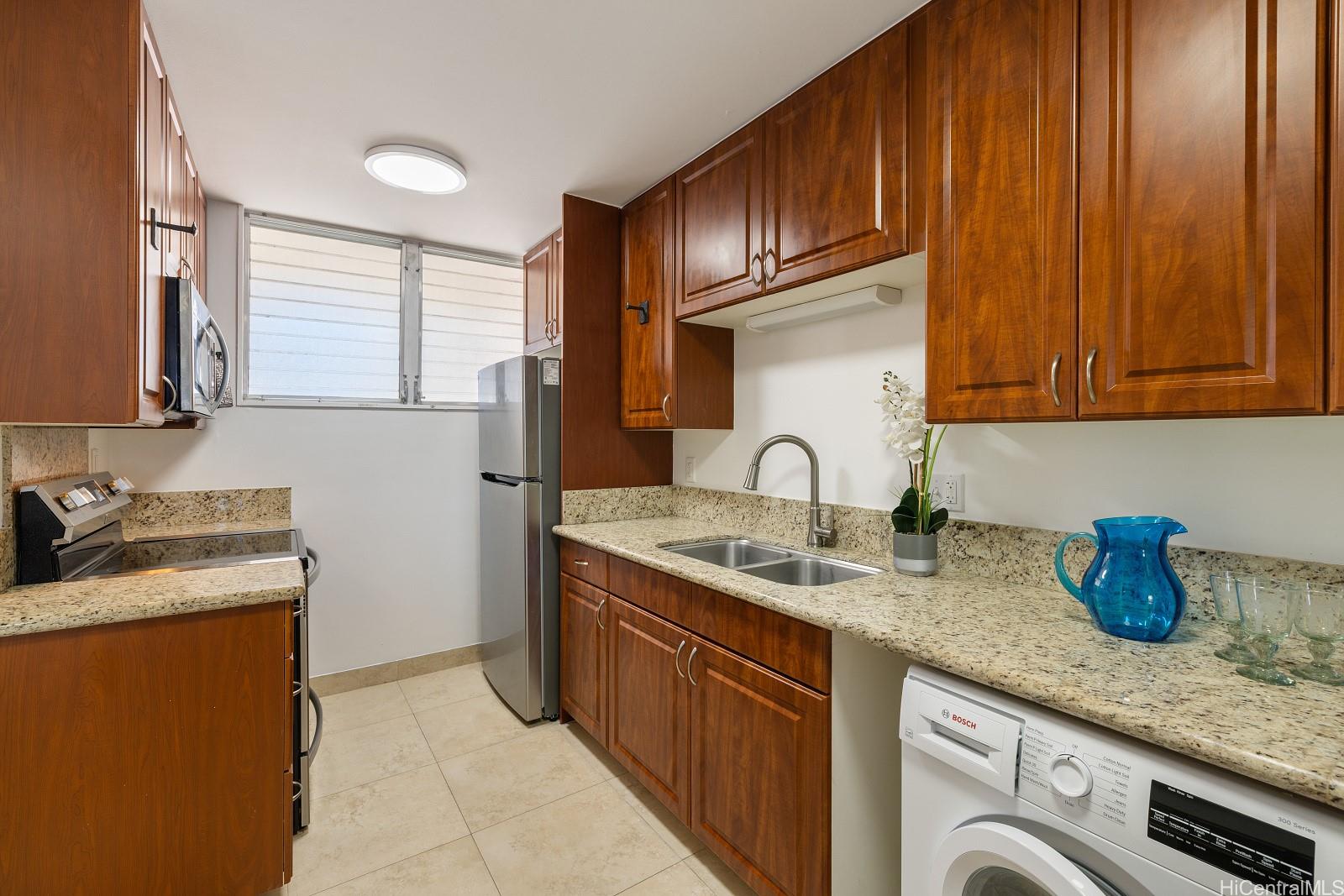 Location, Location, in the heart of Honolulu. Flexible 2 Bedroom, 2 Bath Home in Prime Location-Updated & Move-In Ready! By Don Quijote, great restaurants and Ala Moana. Discover the perfect blend of comfort, convenience and flexibility in this beautifully updated corner, end unit, originally designed as a 3 bedroom. Now, configured as a spacious 2 bedroom, 2 bath layout, it offers the unique opportunity to easily convert back to a 3 bedroom, if desired. Step inside to find a bright, modern interior with thoughtful updates throughout. The open living and dining areas flow seamlessly, perfect for entertaining or relaxing. The kitchen features contemporary finishes, 2025 appliances and new Bosch washer/dryer, while both bathrooms have been tastefully updated. The whole unit has been refreshed with a new coat of paint. The parking stall is by the entrance to the building & there is a small storage locker included. Located in an ultra-convenient neighborhood with easy access to shopping, dining, transit, and more, this home is truly move in ready and designed to fit your lifestyle. Customize your layout, Settle in with ease and Live where it all comes together. Come and View it Today!