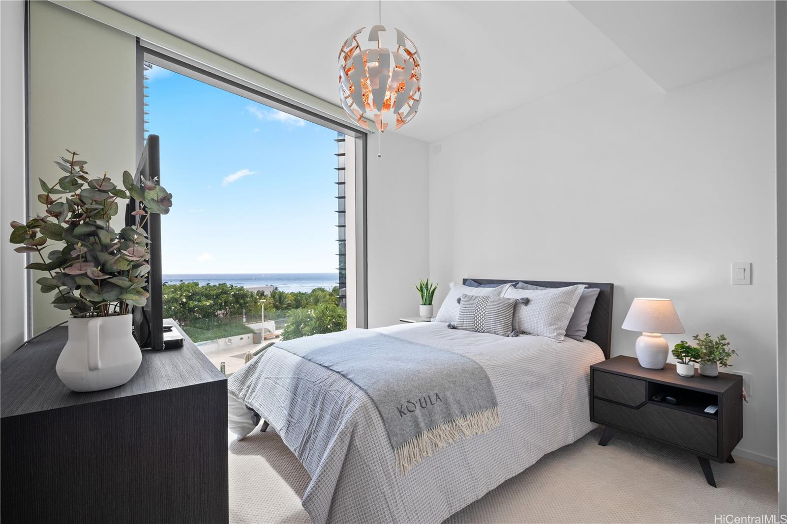 Koula at Ward Village offers island living at its best! Relax and enjoy ocean and pool views with cool breezes from the comfortable lanai. A popular floorplan with bonus nook for remote work or dining, this 1-bedroom, 1-bath Diamond Head facing unit includes a well-appointed kitchen with premium Miele appliances, natural stone counter tops, engineered wood flooring, and an assigned, covered parking space. Koula living includes access to resort-style amenities that include BBQ pavilions, speed grills, private & pool side cabanas, indoor & outdoor fitness centers, locker rooms with steam showers & sauna, private treatment room, private dining room, Grand Lanai, Great Lawn, play area, pool, whirlpools, and guest suites. Conveniently located in the heart of Kakaako near shopping, dining, Ala Moana Beach, Whole Foods and more!