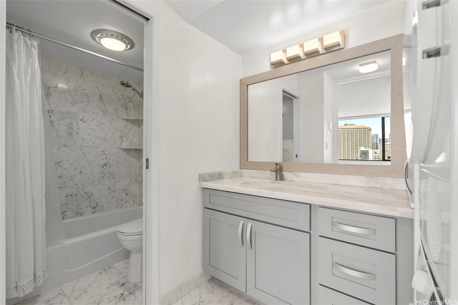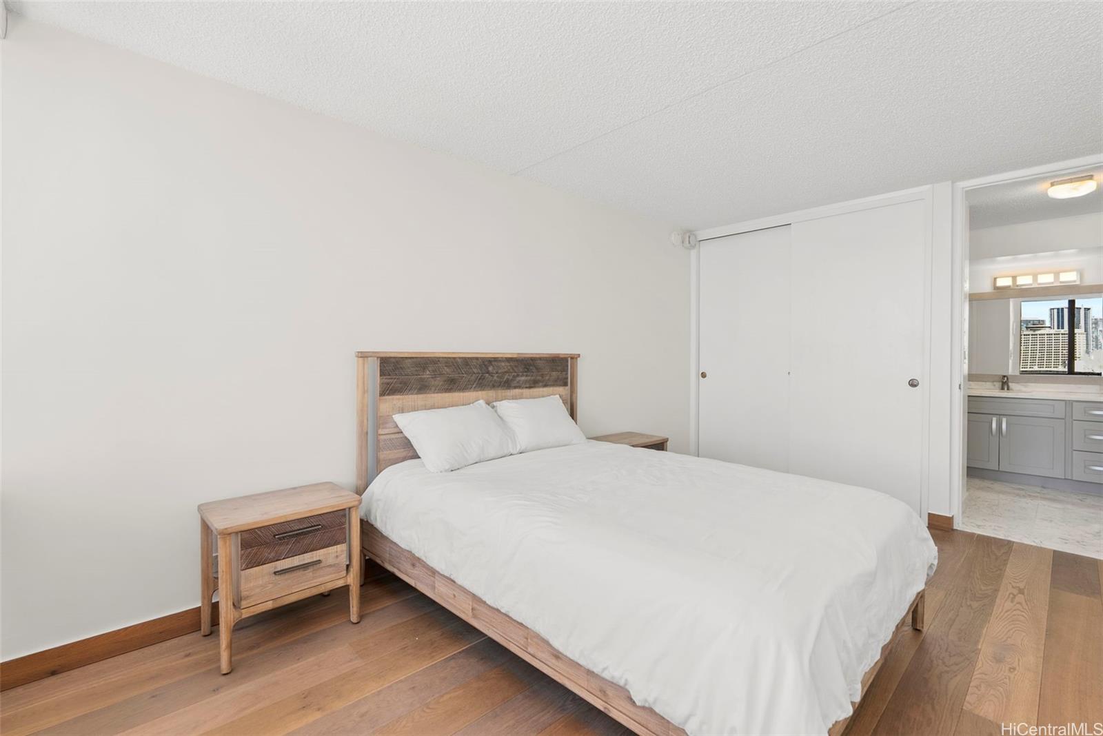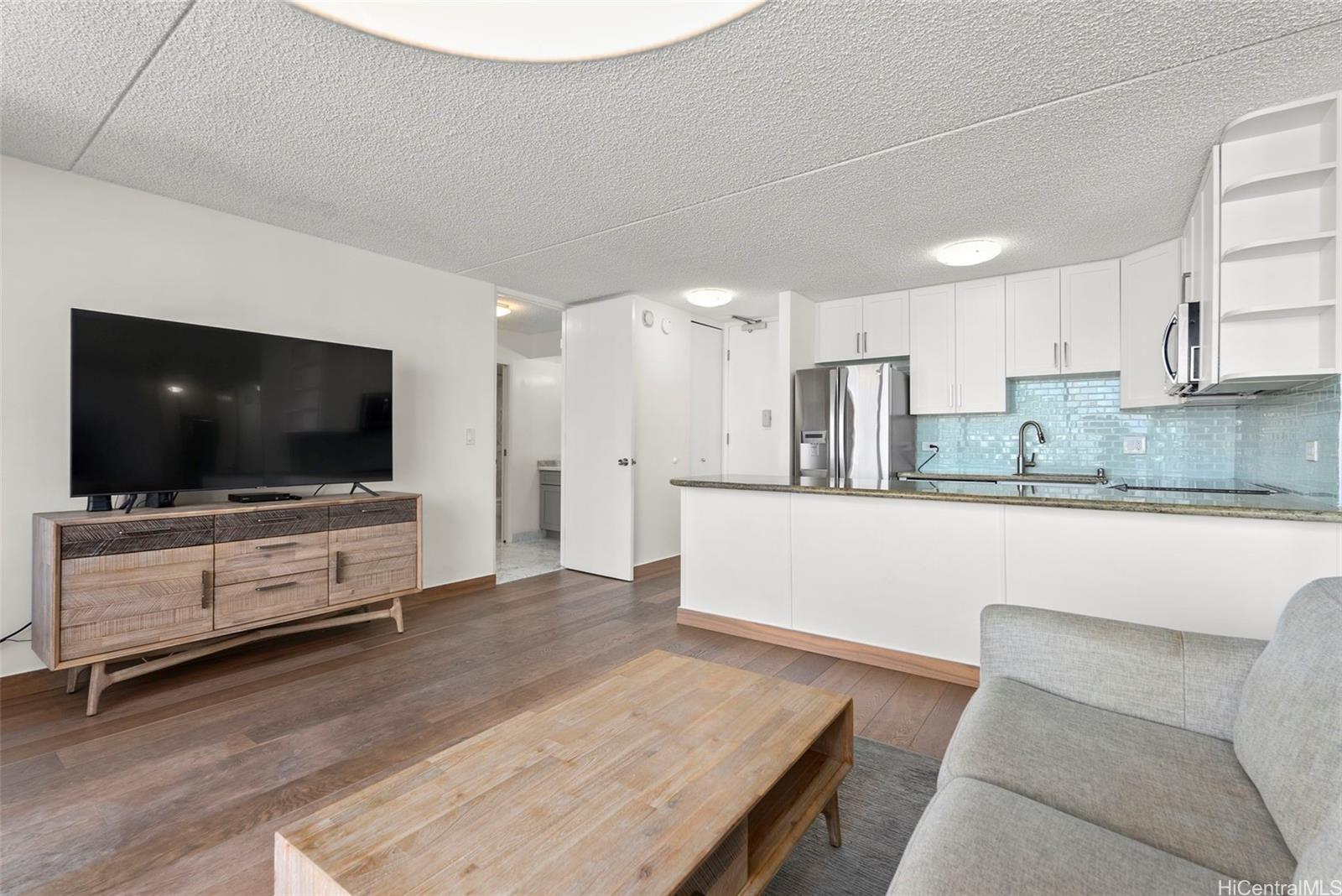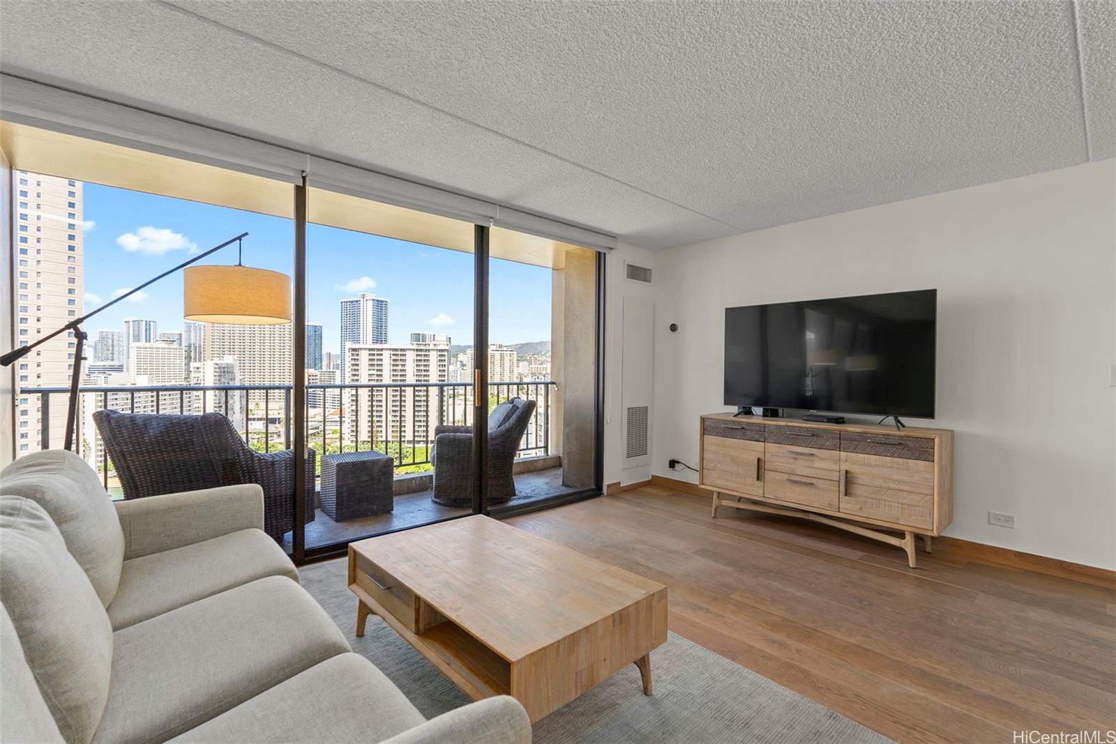 明るく設備の整った1ベッドルーム、1バスルームのユニットに足を踏み入れましょう。屋根付き専用駐車場1台分付きで、広々としたリビングとベッドルームに加え、美しい景色を眺めながらリラックスできるラナイを備えています。大きな窓とスライドドアから自然光が差し込み、リビングスペースを屋外へと広げます。キッチンとバスルームは全面改装済みで、ステンレス製の電化製品、堅木張り/大理石の床、新しいセントラルエアコン、収納ロッカーを備えています。建物には、プール、バーベキュー設備、フィットネスルーム、サウナ、図書室/ゲームルーム、パッティンググリーンを備えたレクリエーションデッキがあり、24時間体制のセキュリティ/警備員が常駐しています。ワイキキ西端の絶好のロケーションで、ビーチ、ハワイコンベンションセンター、アラモアナショッピングセンター、バス路線、レストラン、ショップまですぐです。
