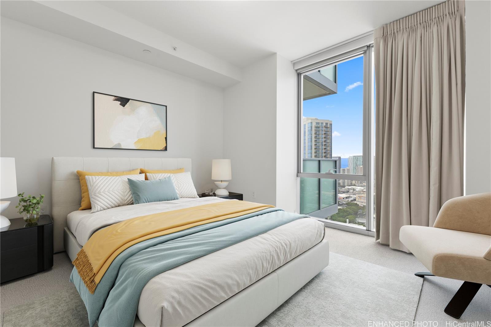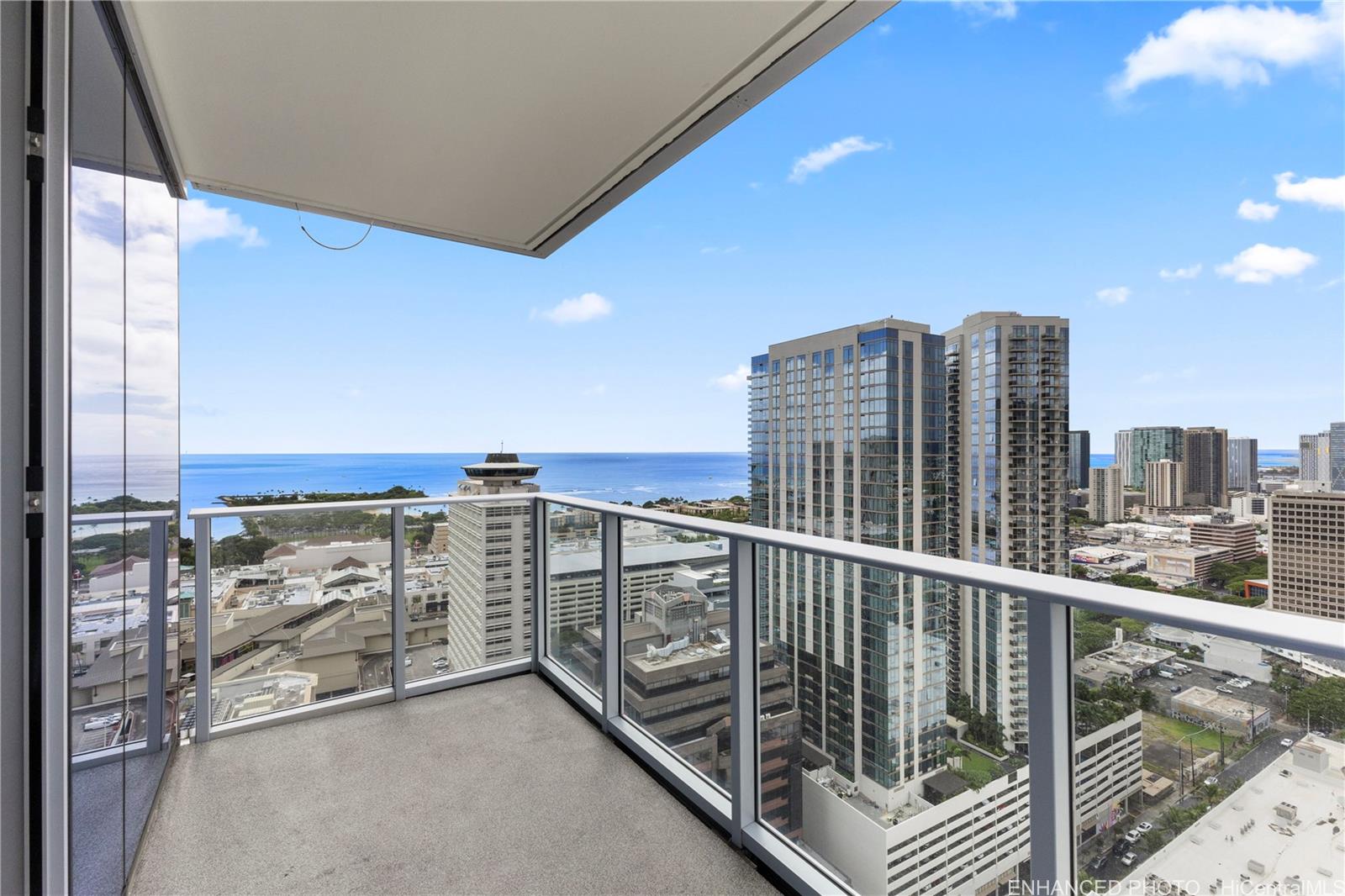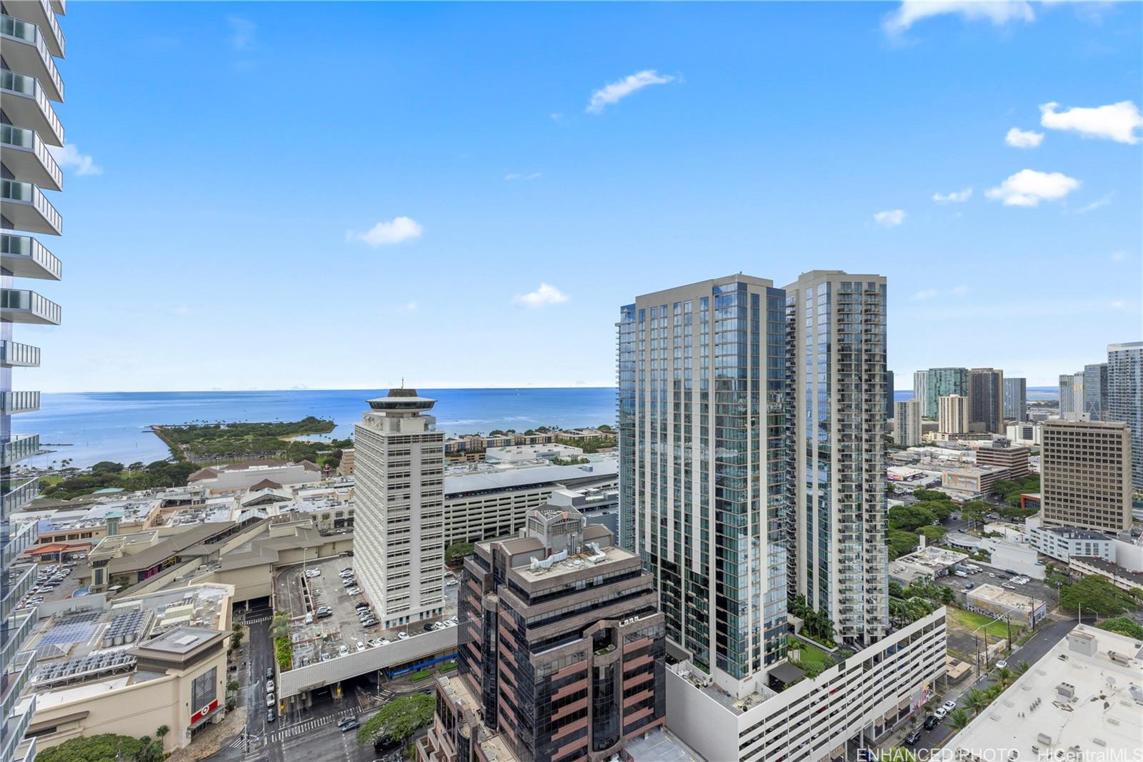 Discover luxury and convenience in this premium 2-bedroom, 2-bathroom corner residence located on a high floor of the highly sought-after Azure Ala Moana. This spacious unit includes two side-by-side covered parking stalls and a private storage locker in the garage. Enjoy breathtaking ocean and sunset views from your living room, complemented by roller shades throughout and blackout curtains in all bedrooms. Kitchen features top-of-the-line Sub-Zero, Wolf, and Bosch appliances, perfect for home chefs and entertainers alike. Just a short 5–10 minute distance to Ala Moana Center, Ala Moana Beach Park, Target, Sam’s Club, and countless dining and shopping options, this home places you right in the center of Honolulu’s vibrant lifestyle. Resort-style amenities include a pool and jacuzzi, BBQ pavilions, a movie theater, fitness center, bicycle and surfboard storage, guest suites, and high-speed Wi-Fi throughout the amenity areas. The building also offers secured entry and 24-hour concierge and reception services for your comfort and peace of mind.