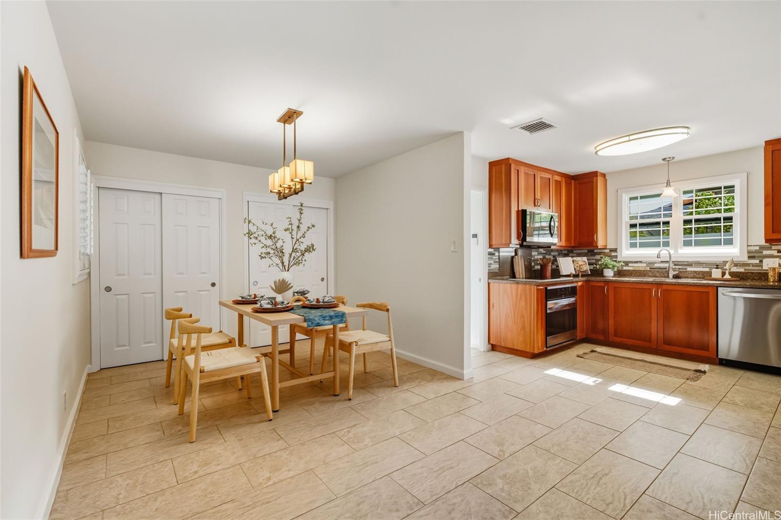 Welcome to a place where comfort, warmth, and Kailua living truly come together. Nestled in the well-loved Kaopa neighborhood of Kailua, this 4-bedroom, 2-bath home offers nearly 2,000 sq. ft. of inviting interior space on a generous 6,000 sq. ft. lot. Cool central AC and abundant natural light create an atmosphere of ease and belonging. Inside, a second family room provides the flexibility every household appreciates, whether you imagine it as a play space, media room, or a cozy retreat for gatherings. Step out to the covered lanai, perfect for weekend mornings, evening dinners, or simply enjoying the breeze. The fully fenced yard offers privacy, and room to play, garden, or relax. Thoughtfully upgraded with an owned photovoltaic system, this home is designed for both beautiful living and long-term peace of mind. Located just minutes from schools, grocery stores, and Kailua’s favorite local restaurants, it brings everyday convenience right to your doorstep.
