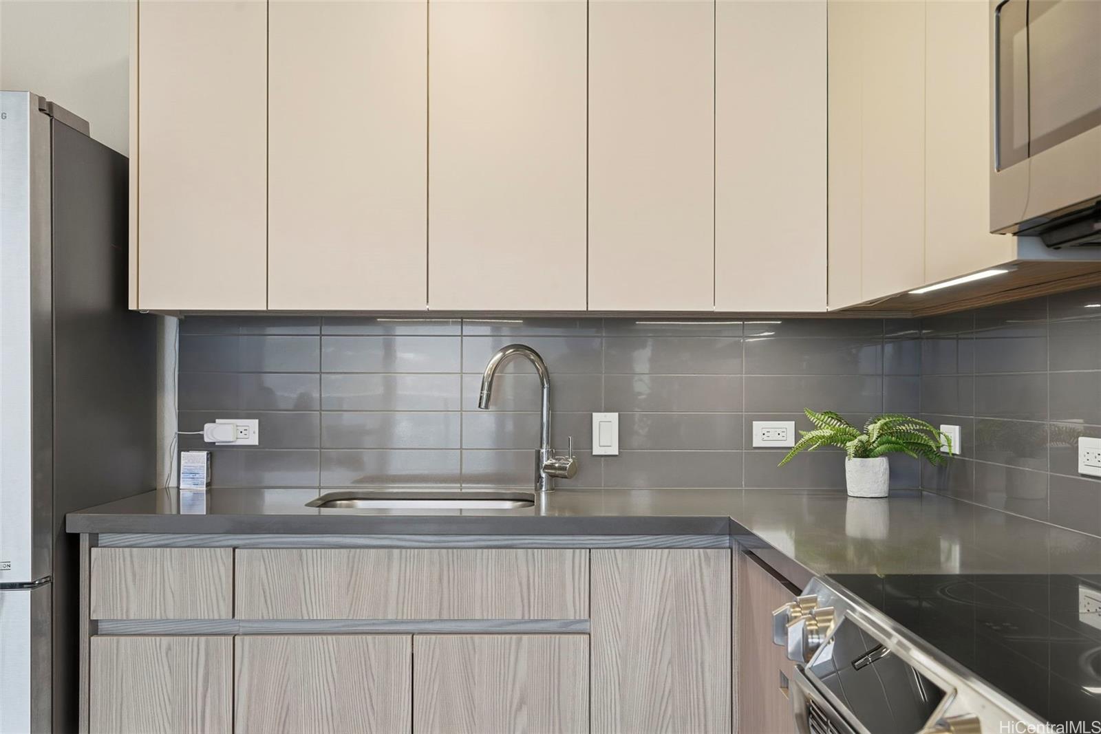 Private in-unit laundry room w/ a stackable front-load washer and dryer, along with two separate storage closets. The secure building offers resort-style amenities including a barbecue area, recreation deck, meeting room, EV charging station, & one assigned parking stall. Located near the Hawaii Convention Center, Ala Moana, & world-renowned beaches, this turnkey residence presents a rare opportunity to enjoy luxury, convenience, & elevated island living.