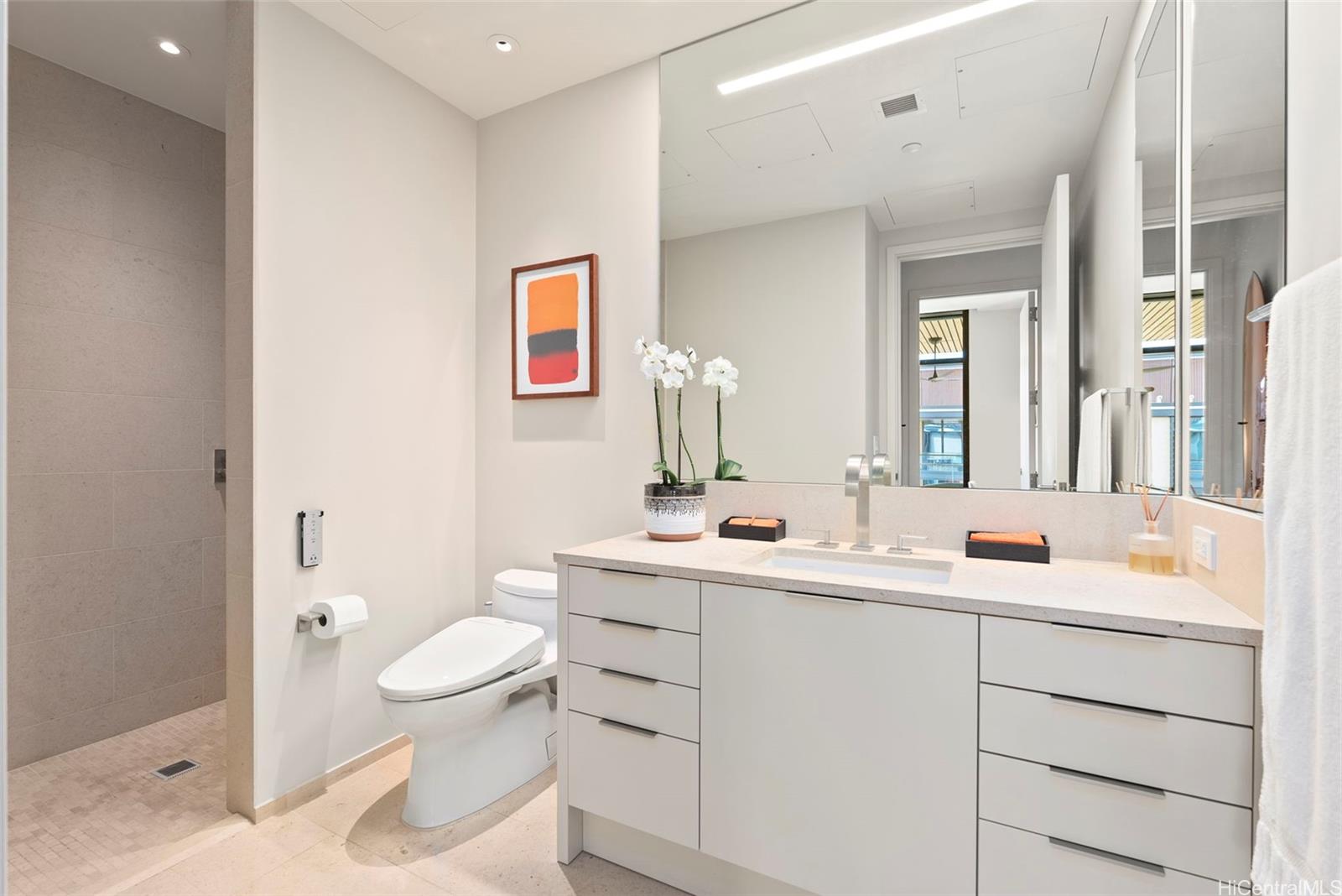 名高いパークレーン・アラモアナの8階に位置する、洗練された2ベッドルーム、2バスルームのコートヤードレジデンス。書斎も備え、島のラグジュアリーと特別な空間が融合した空間です。センスの良い家具が配されたこのレジデンスは、ワールドクラスのデザイン要素を随所に取り入れ、Mobimex社製のZoom製高級ダイニングテーブル、ルイスポールセンの象徴的なアーティチョークペンダントなど、洗練された空間が日々の暮らしにも優雅なひとときにも洗練された雰囲気を演出します。高い天井と最上階という立地が開放感と静寂感を高め、多目的な書斎はホームオフィスやメディアラウンジに最適な空間を提供します。アラモアナビーチパークの向かいに位置し、ショッピングやレストランにも徒歩圏内という理想的な立地にあるパークレーンは、コンシェルジュサービス、フィットネスセンター、プール、スパ、プライベートシアター、ダイニングルーム、緑豊かな庭園など、リゾートスタイルのアメニティをご提供します。ホノルルで最も人気のある住所のひとつに、細心の注意を払って設計され、家具が備え付けられた家をすぐに所有できるチャンスです。