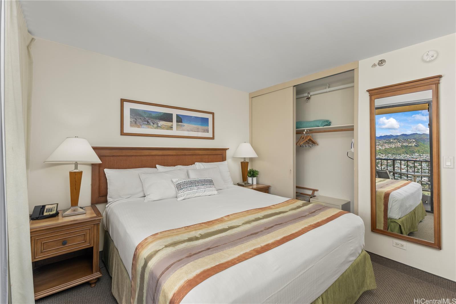 ペントハウス階の1階下にある合法的な短期賃貸物件です。高層階に位置し、家具完備ですぐに入居可能な1ベッドルームのユニットから美しい景色をお楽しみいただけます。ココクレーター、海、ダイヤモンドヘッド、アラワイゴルフコース、マノアバレー、そして遠くに見えるハワイ大学キャンパスを眺めながら、プライベートバルコニーで朝食をお楽しみください。現在アストン賃貸プログラムに参加しているこのアパートメントは、有効な非適合使用証明書(NUC)を保有しています。3D Matterportフロアプランをオンラインでご覧ください。世界的に有名なワイキキビーチから徒歩圏内に位置し、サーフィン、日光浴、シュノーケリング、オーシャンフロントのダイニングに簡単にアクセスできます。近隣の観光スポットには、アラワイゴルフコース、カパフルの地元レストラン、カピオラニコミュニティカレッジ、ファーマーズマーケット、ホノルル動物園、水族館、アラモアナセンター、活気あふれるカカアコ地区などがあります。このエリアは公共交通機関やトロリー路線で簡単にアクセスできます。ワイキキサンセットは、各階にスイミングプール、バーベキューエリア、サウナ、ジム、パティオ/デッキ、ランドリー設備など、様々なアメニティを備えています。共用設備として、駐車スペース1台分(指定なし)が付属しています。ワイキキで合法的なバケーションレンタルをお探しの方にとって、絶好の機会です。