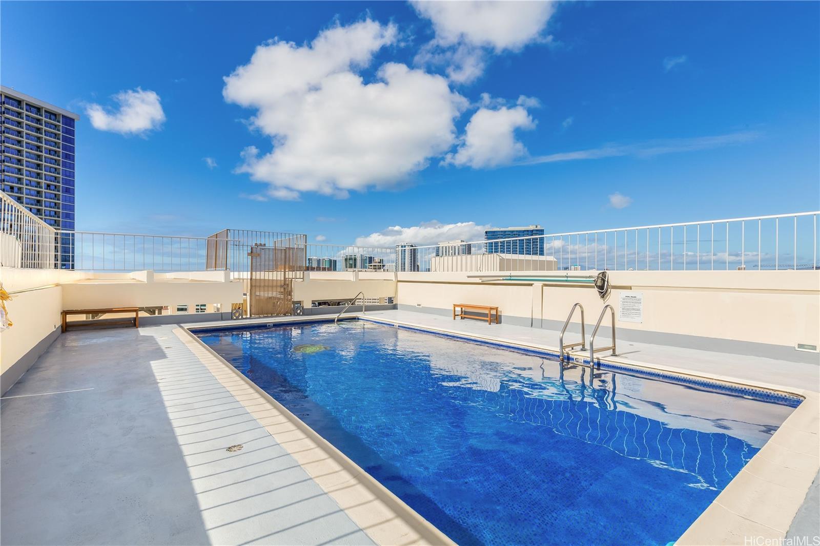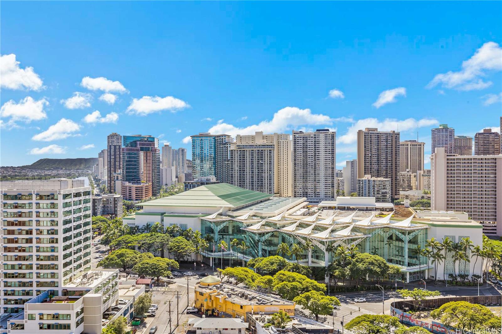 Discover island living at Kapiolani Manor, a centrally located residence offering exceptional convenience and sweeping views. This desirable corner end unit captures diamond head, ocean, city, and mountain views, providing beautiful natural light and cooling cross-breezes. Residents enjoy access to a rooftop pool and recreation area, laundry facilities on every floor, additional storage, and assigned parking within a secured garage. Ideally positioned near Ala Moana Center, Ala Moana Beach Park, The Convention Center, Don Quijote, and an array of local dining and shopping options, this home offers outstanding walkability and easy access to Waikiki, Kaka`ako, and beyond. A fantastic opportunity for both owner-occupants and investors seeking location and lifestyle. Prime covered parking stall located on 1st floor of garage.