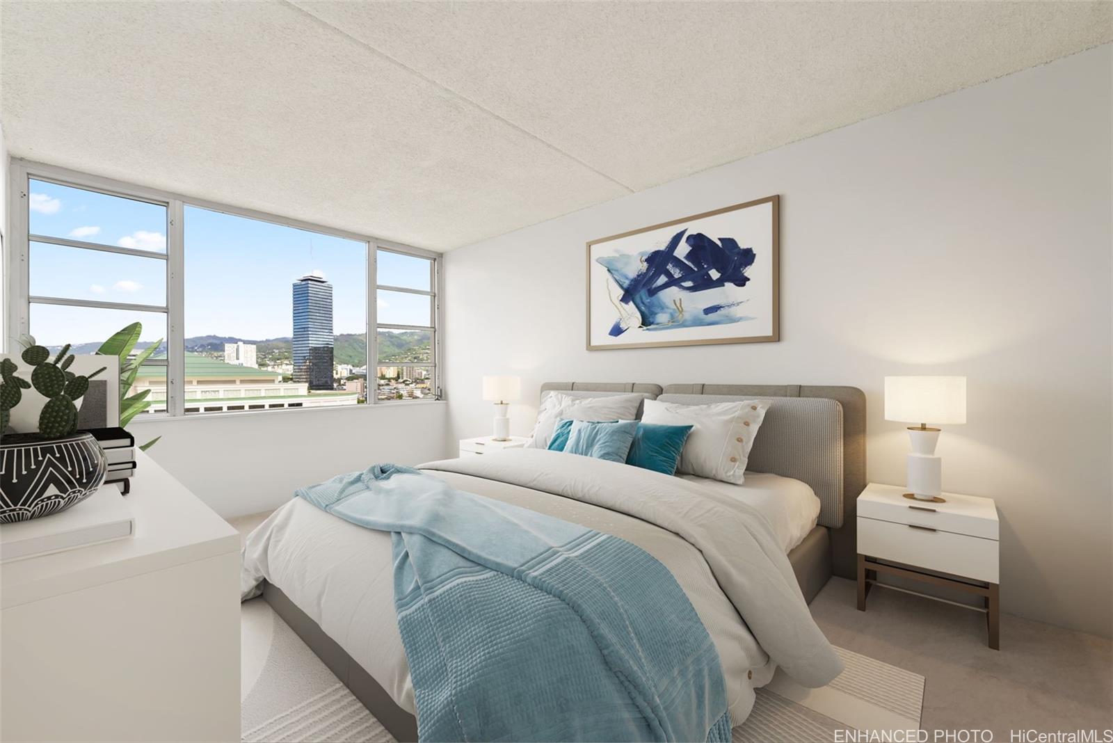 ワイキキとアラモアナの活気あふれるエリアに挟まれたヴィラ・オン・イートン・スクエアは、ビーチからわずか数ブロック、公園、ショッピング、レストラン(フードパントリー、クルクル、そして新しくオープンしたマンチ&ブランチなど)にも近い絶好のロケーションです。広々とした1ベッドルーム、1バスルームのこの物件は、内装とカーペットが新しく塗り替えられ、アラワイ運河、コンベンションセンター、そして部分的に広がるオーシャンビューの素晴らしい景色を誇ります。屋上プール、バーベキューエリア、サンデッキ、サウナ、フィットネスルームなど、リゾートスタイルのアメニティをお楽しみください。すぐに入居したい方も、リノベーションで自分らしい空間にしたい方も、この物件は柔軟に対応いたします。建物には、安全な屋根付き駐車場、防犯カメラ、24時間体制の警備サービスが完備されており、安心してお住まいいただけます。2枚の写真がバーチャルステージング(加工)されています。