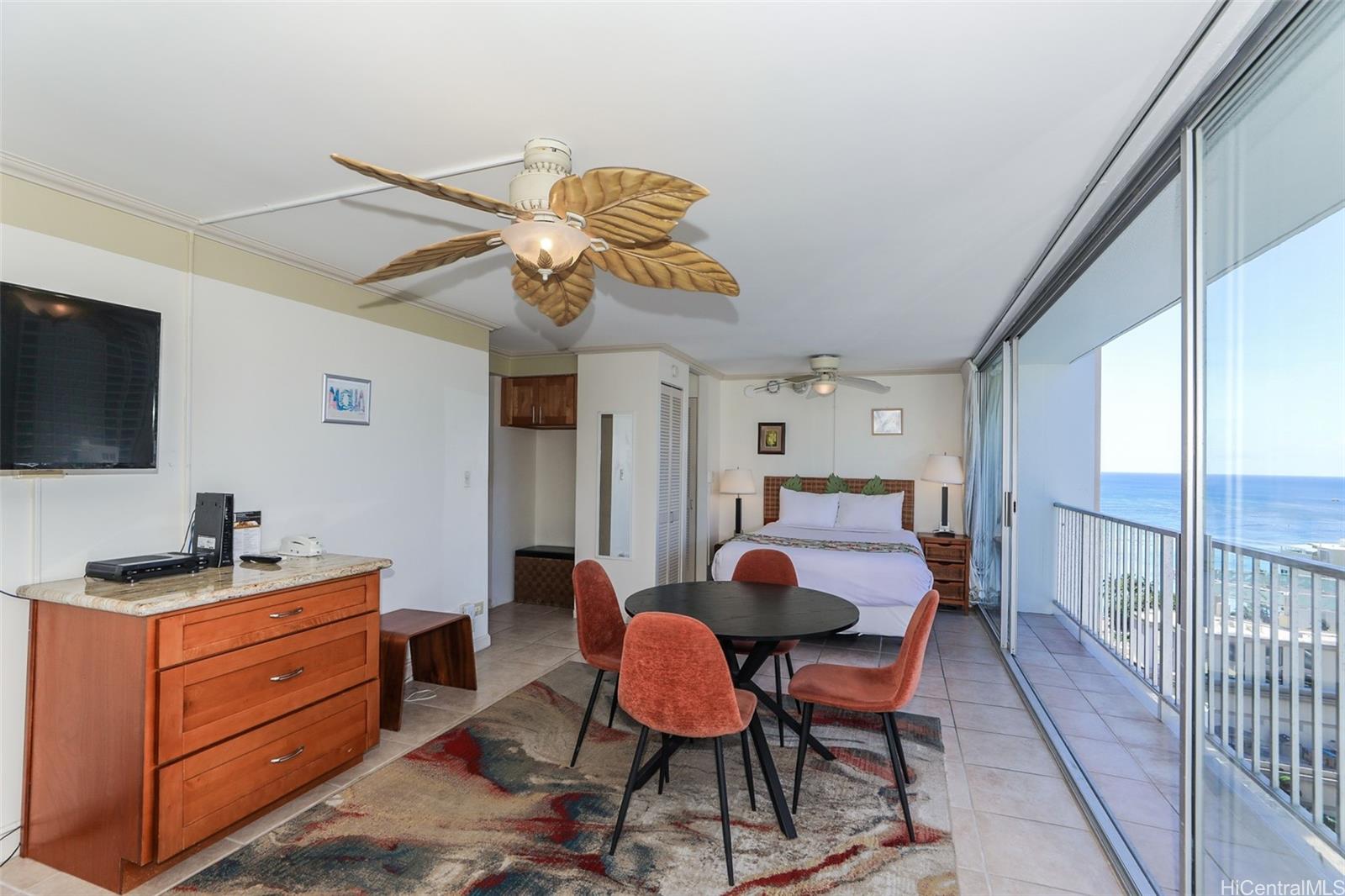 Legal vacation rental in the Waikiki resort zone. High floor unit 1904 at the Pacific Monarch is fully furnished and income producing. Currently in the hotel rental pool, this turnkey studio offers investors and cash buyers an opportunity to earn revenue from day one and enjoy personal use. This well-maintained studio accommodates up to four guests and has been owner-managed off the market for over ten years, with one full & one partial renovation completed. The unit features breathtaking ocean, mountain, and city views from a high floor, enhancing both rental appeal and personal enjoyment. Two-minute walk to Waikiki Beach and close to Target, Intl. Market Place, ABC Stores, restaurants, shops, and bus lines. This location is ideal for short and long stays. The building has completed major renovations, including upgraded common areas & ground-floor retail. The rooftop sky terrace and pool deck provide panoramic ocean views and sunsets. Unit 1904 is a well-maintained, move-in opportunity in one of Waikiki's most desirable locations.