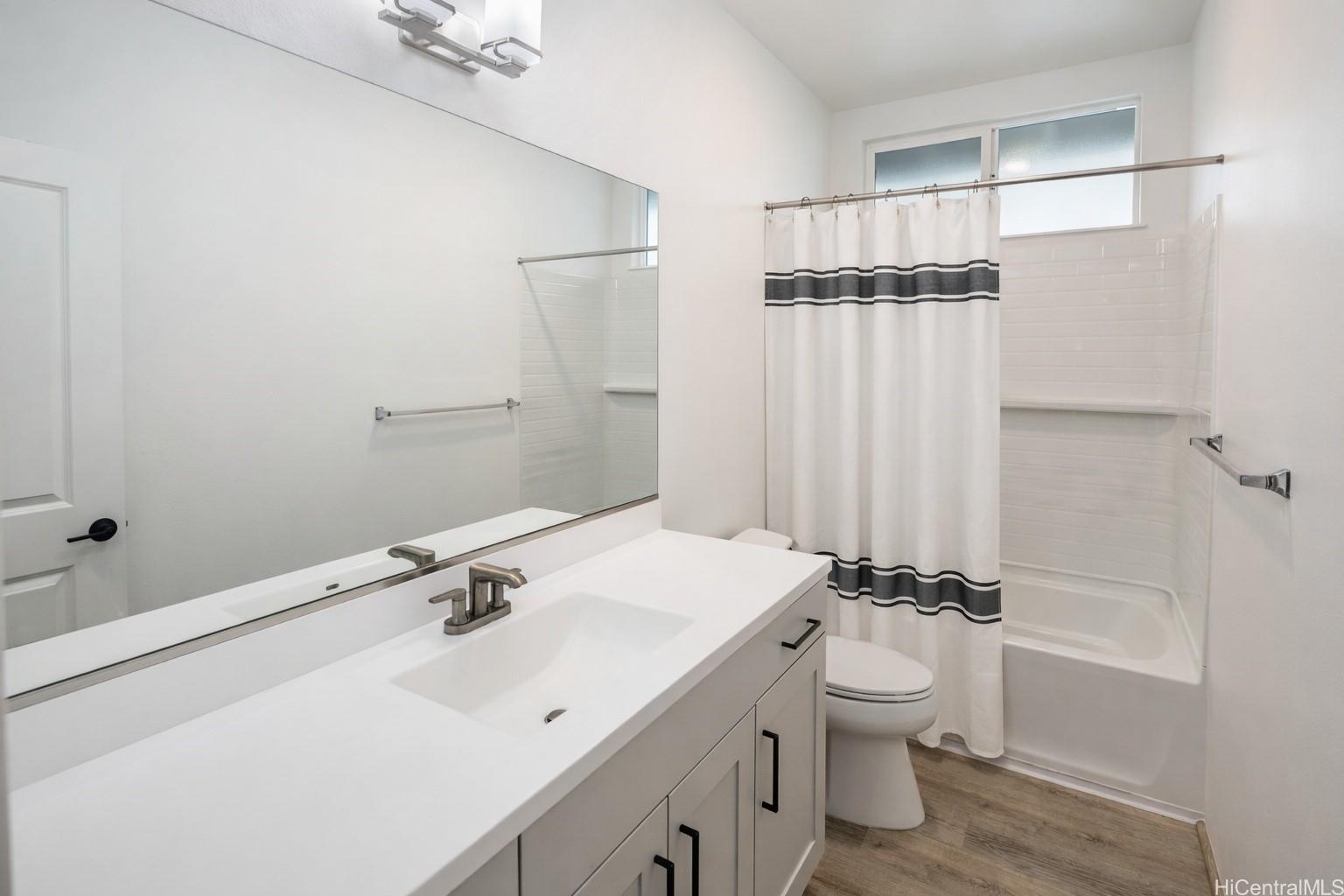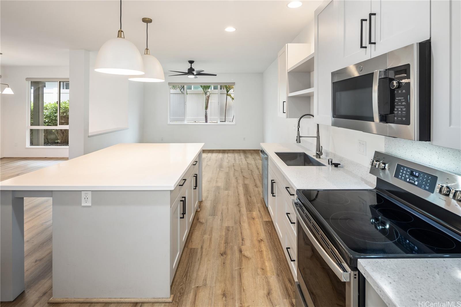 エヴァ・ジェントリーの最新高級住宅地マカマエにある、魅力的なホオマウ・プランの住宅です。2022年に建てられたこの家は、まるで新築のように美しく保たれています。オーナーがこのモデルを選んだのには理由があり、その理由は一目瞭然です。まず目に留まるのは、リラックスしたり、ゲストをもてなしたりするのに最適な、広々とした屋根付きラナイ。さらに、ゲストや親戚、ホームオフィスとしても使える、ゆったりとした1階のベッドルームとフルバスルームも備えています。室内は、理にかなったレイアウト。高い天井、広々としたパントリー、モデルハウスと同様の高級ビニール製フローリング、アップグレードされたカウンタートップ、ステンレス製家電など、清潔感のある仕上げが施された、開放的で明るく機能的な空間です。広い私道と路上駐車の心配がないという点も大きな魅力で、想像以上に重宝するでしょう。さらに、テスラ製バッテリーを備えた14枚の自家所有の太陽光発電パネルが、エネルギーコストの削減に貢献します。マカマエはエヴァで最も人気のある新しいコミュニティの一つに急速に成長しており、このような住宅はその大きな理由の一つです。画一的ではなく、あなたのニーズを満たす住宅をお探しなら、まさにこれです。オープンハウス:4月12日(日)午後2時~4時