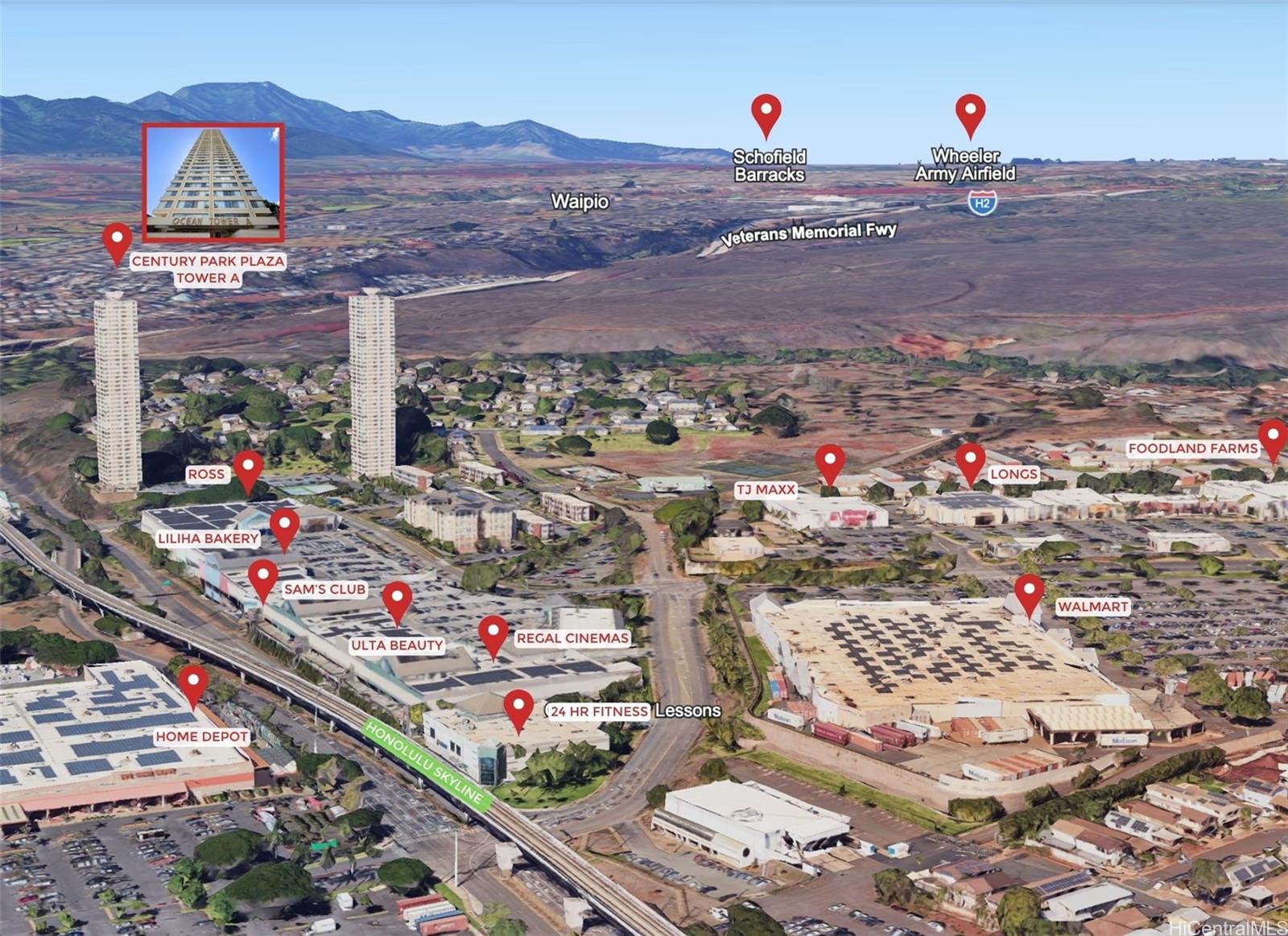 Are you a first-time homebuyer, investor, or down-sizer? Welcome home to Century Park Plaza! This well-maintained 1-bed, 1-bath corner unit positioned on the cooler side of the building offers breathtaking panoramic mountain views and an unbeatable location. Step inside to a functional layout featuring a spacious living room with large windows that invite an abundance of natural light and cool breezes throughout the home. This unit includes a secured/covered parking stall and comes equipped with a window AC unit, dishwasher, and a washer/dryer for everyday convenience. The bathroom was recently updated with a new vanity and light fixture, adding a fresh touch. Ideally situated in Central O‘ahu, you’ll enjoy a highly convenient lifestyle with close proximity to dining, shopping, and entertainment, along with easy access to the Skyline Rail, Pearl Harbor, and nearby freeways. Popular destinations like Walmart, Foodland, Sam's Club, and 24 Hr Fitness are right at your fingertips. Enjoy resort-style amenities including a swimming pool, jacuzzi, 24/7 security, pickleball, tennis and basketball courts. Don’t miss this opportunity to own a move-in ready home in one of the best locations!