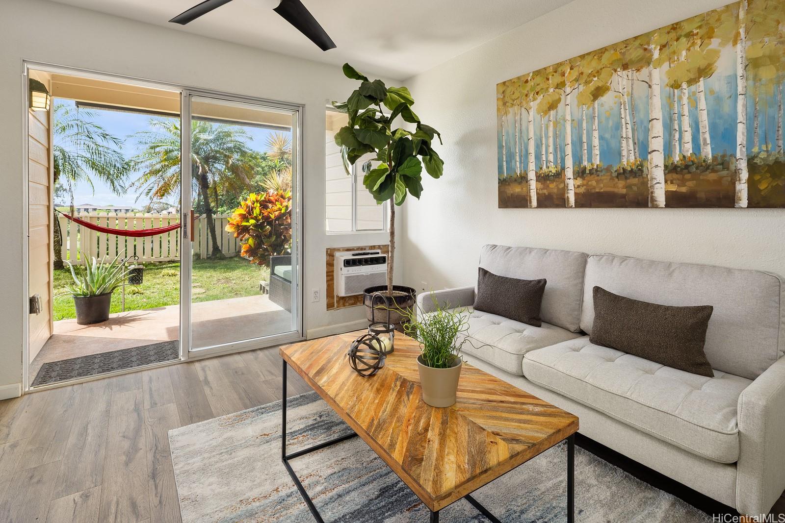 アッパー・マカキロの高級タウンハウスコミュニティ、ウエストビュー・アット・マカキロ・ハイツへようこそ。マカキロのメインストリート、マカキロ・ドライブ沿い、ほぼ最高地点に位置し、一番奥の建物にあるこのユニットは、通り抜け交通がほとんどないため、静かで穏やかな環境をお楽しみいただけます。2ベッドルーム/2バスルームのこのユニットは、742平方フィートの室内面積ながら、ゆったりとした空間が広がります。1階にあるため、広々とした芝生の裏庭と屋根付きパティオエリアがあり、パーティーを開いたり、愛犬や愛猫が自由に走り回ったりするのに最適です。外周に位置する建物のため、背後には広々とした芝生エリアが広がり、開放感あふれる空間が広がります。各ベッドルームはユニットの両端に配置され、2つのバスルームで隔てられているため、プライバシーが最大限に確保されています。建物の正面に1台、向かい側にもう1台駐車できる便利な駐車スペースもご利用いただけます。コミュニティの洗車場とゴミ収集所も駐車場の近くにあります。素晴らしい立地にある、初めてのマイホームに最適です。ぜひお越しください。あ、それから、退役軍人の方なら、3.75%の低金利でローンを引き継ぐことも可能です!