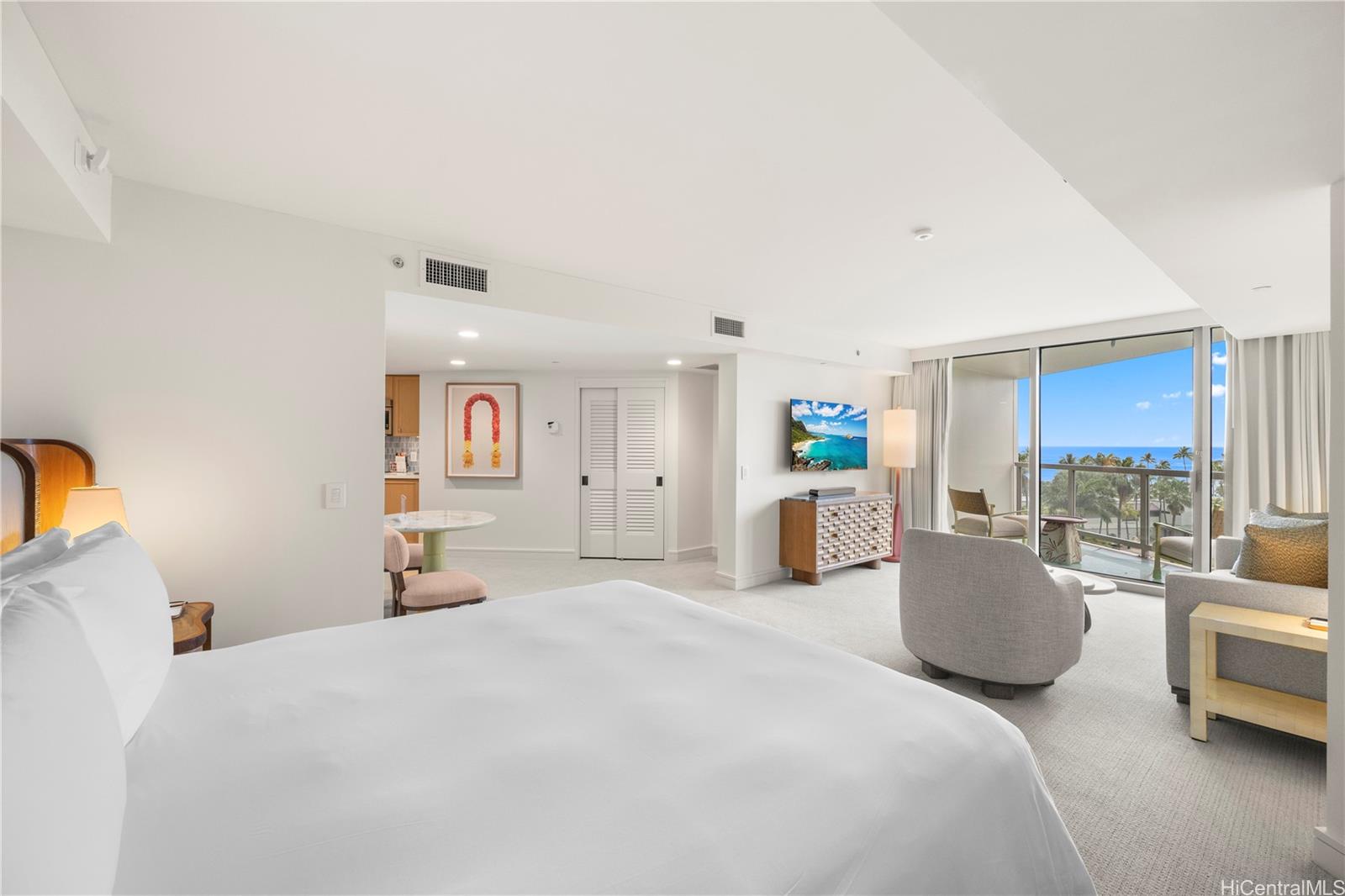 めったに手に入らない最大のスタジオユニット、ダイニングテーブルと椅子付きのリビングスペース617平方フィート。2026年1月に改装完了!Ka La'i Waikiki Beach、LXR Hotels & Resorts Hotel/Condoで贅沢な暮らしをお楽しみください!(旧トランプインターナショナルホテルワイキキ)このスタジオユニットは、リネン類とキッチン用品がすべて揃ったフル家具付きで、海と山の景色が楽しめます!最高級のアメニティには、インフィニティプール、コンシェルジュ、バレーパーキング、フルサービスのスパが含まれます。購入には、高級家電、花崗岩のカウンタートップ、トラバーチンタイルの床が含まれます。ワイキキの有名な白い砂浜からすぐです。ユニットがホテルレンタルに参加するには内装の改装が必須ですが、このユニットはプログラムに参加する資格があります。残っているのは税区分を変更することだけです!