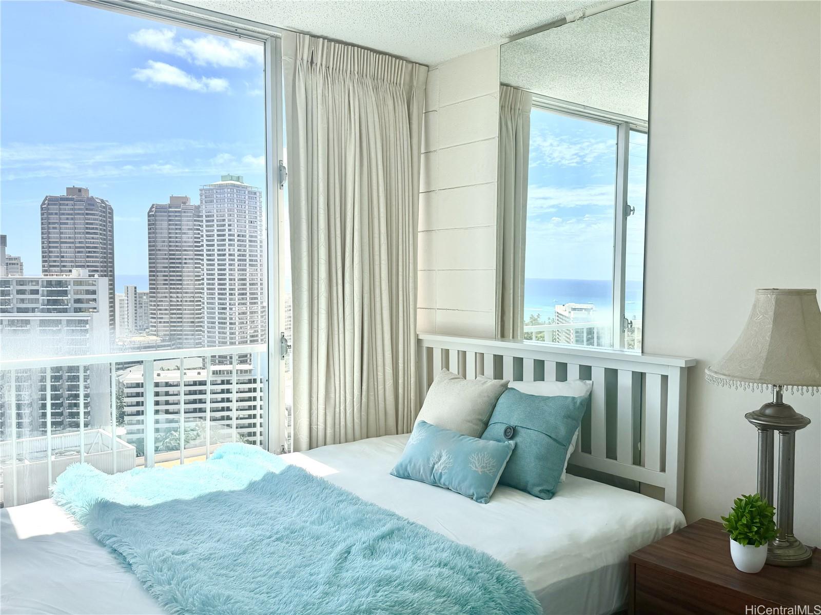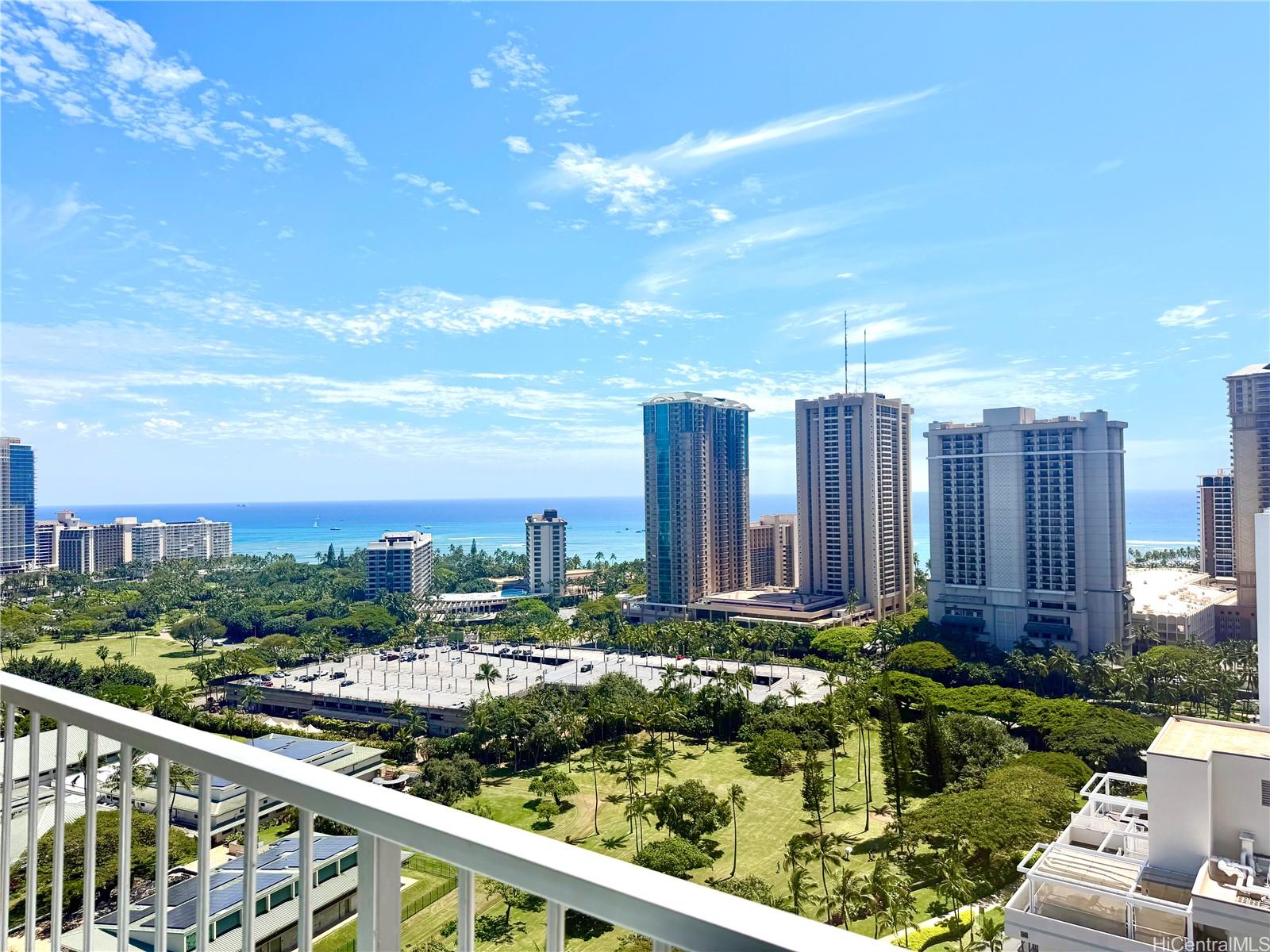Enjoy elevated living from this high-floor residence at The Pavilion Waikiki. Located on the 26th floor, this unit offers ocean views as the primary backdrop, complemented by the lush greenery of Fort DeRussy Beach Park below—creating a unique blend of blue and green scenery.