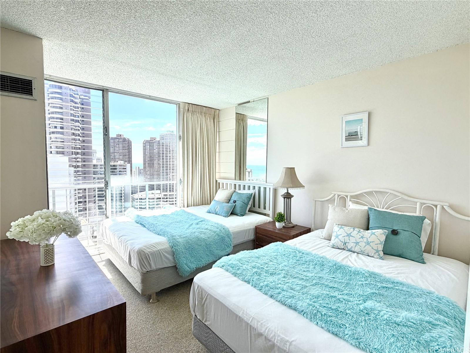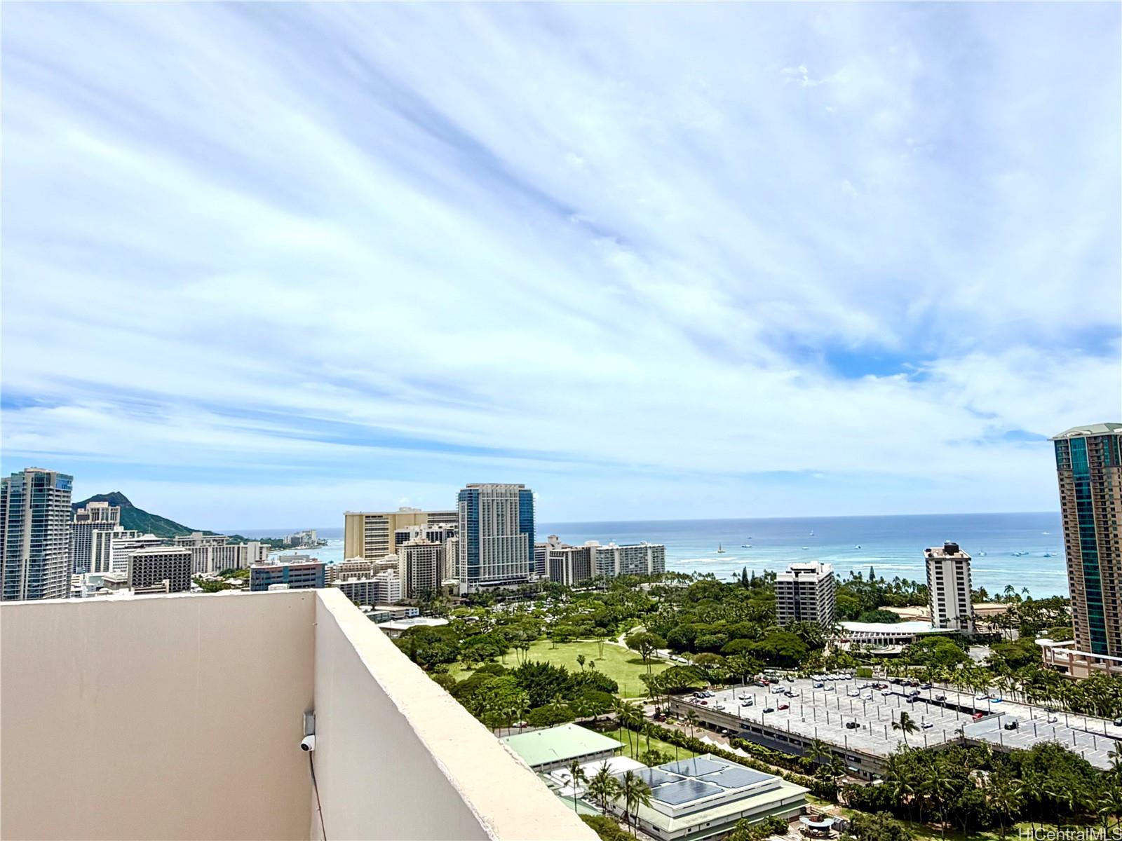 ザ・パビリオン・ワイキキの高層階レジデンスで、ワンランク上の暮らしをお楽しみください。26階に位置するこのユニットからは、オーシャンビューがメインの眺望となり、眼下にはフォート・デルッシー・ビーチパークの緑豊かな景色が広がります。青と緑の絶妙なコントラストが織りなす、他に類を見ない景観です。広々としたラナイ、セントラルエアコン、室内洗濯乾燥機を完備。管理費には電気、水道、ケーブルテレビ、インターネットが含まれており、所有の利便性と価値を高めています。また、専用駐車場とキーフォブによるアクセスもご利用いただけます。ザ・パビリオンは各階わずか7戸のブティックビルで、ワイキキでよりプライベートな居住体験を提供します。アメニティには、オーシャンビューとサンセットビューの屋上プール、バーベキューエリア、サウナ、ゲスト用駐車場、サーフボードや自転車の保管スペースなどがあります。ワイキキの入り口に位置し、ビーチ、アラモアナショッピングセンター、そして数多くのレストランやショップまでわずか数分という理想的なロケーションです。ペット可(要確認)。