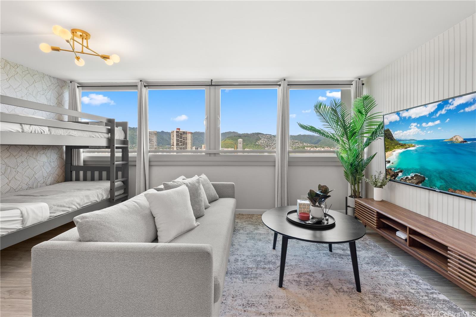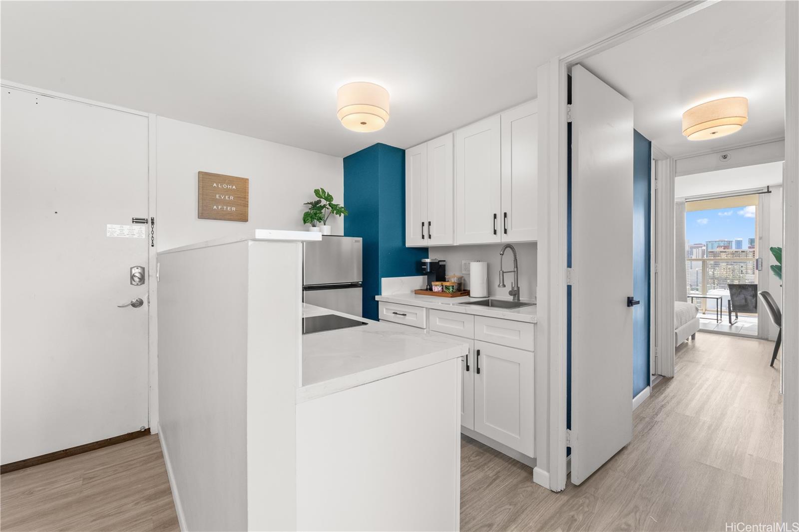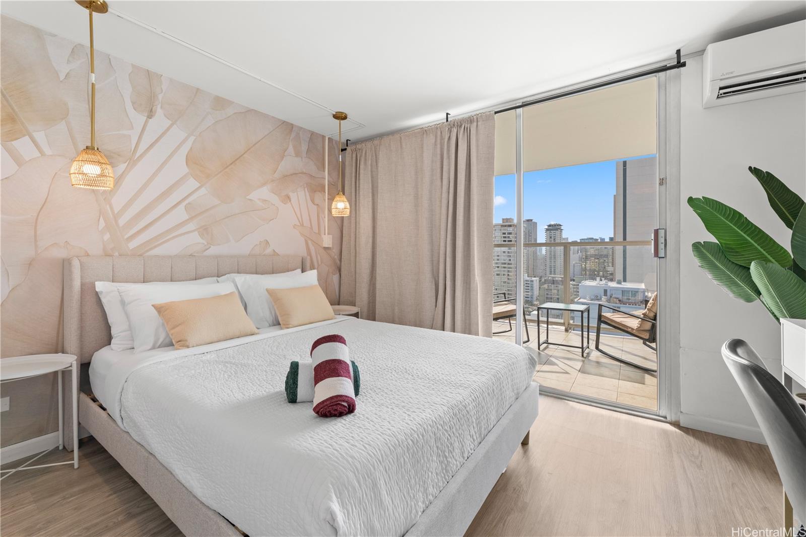 アイランドコロニーの、センス良く改装された高層階の1ベッドルーム/1バスルームのレジデンスで、ワンランク上のアイランドライフをご体験ください。人気の高い短期レンタル(STR)物件であるこのユニットは、抜群の柔軟性と高い収益性を誇り、リビングルームとベッドルームの両方にスプリットエアコンが設置されているため、快適な滞在をお約束します。リビングスペースからは雄大な山々の景色が広がり、プライベートラナイからは、静かなアラワイ運河の景色と、地平線に広がる海の景色をお楽しみいただけます。リラックスしたり、ゲストをもてなしたりするのに最適です。活気あふれるワイキキの中心部に位置し、世界的に有名なビーチ、高級ショッピング、一流レストラン、そして数えきれないほどのエンターテイメントに囲まれています。アラモアナ、カカアコ、カハラ、ダイヤモンドヘッドなどへのアクセスも抜群です。フルターンキー方式で提供されるこのレジデンスは、ゲストの体験を向上させ、レンタル収益を最大化するように設計されたスマートで効率的な寝室レイアウトが特徴で、投資家にも、プライベートなアイランドエスケープを求める方にも最適です。アイランドコロニーには、プール、ジャグジー、サウナ、バーベキューエリア、フィットネスセンター、ロビーの集会スペースなど、リゾートスタイルのアメニティが揃っています。 24時間体制のセキュリティで、安心してお過ごしいただけます。