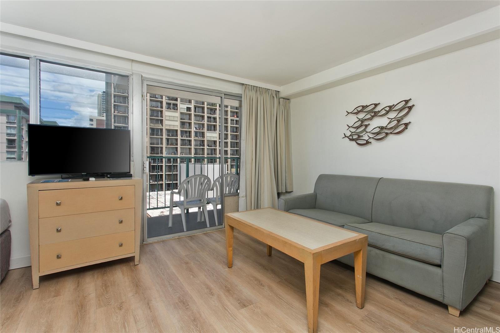 If locations is your top priority among Waikiki condominiums, Aloha Surf Waikiki stands out as an excellent choice, ideally situated in the heart of Waikiki. Just a short distance from the beach, it is perfect for those who want to enjoy the ocean every day. For shopping enthusiasts, the nearby Royal Hawaiian Shopping Center offers a wide range of retail options, while food lovers will appreciate the diverse selection of restaurants within close proximity. Owning a hotel-condominium offers the benefit of keeping personal stay costs low, while also providing the opportunity to generate rental income when the unit is not in use-an attractive and flexible investment option. Fully renovated in December 2025, this unit has been completely refreshed with all-new LVP flooring, baseboards, shower tile, vanity, sink, kitchenette, bathroom fixtures, toilet, paint, and lighting, along with the removal of the popcorn ceiling., creating a clean and modern aesthetic throughout.