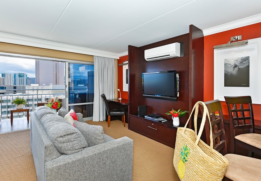 ハワイのバケーション・レンタルの草分け的な存在のイリカイ・アパート。ホテルよりも自由にデザインされた広ーいスタジオユニット。景観というのがふさわしい見とれてしまう海の景色。ここのベランダからはホノルル空港の青いラグーンと、そのずっと先のエバ・ビーチまで見渡せます。歩いて5分で湾曲した白砂のワイキキビーチ、サーファーでにぎあうロック・パイルのポイント。ヒルトンのラグーン。大きなプール。ショッピング、ダイニングに便利な立地。楽しいバケーションの条件が全て揃ったユニットです。