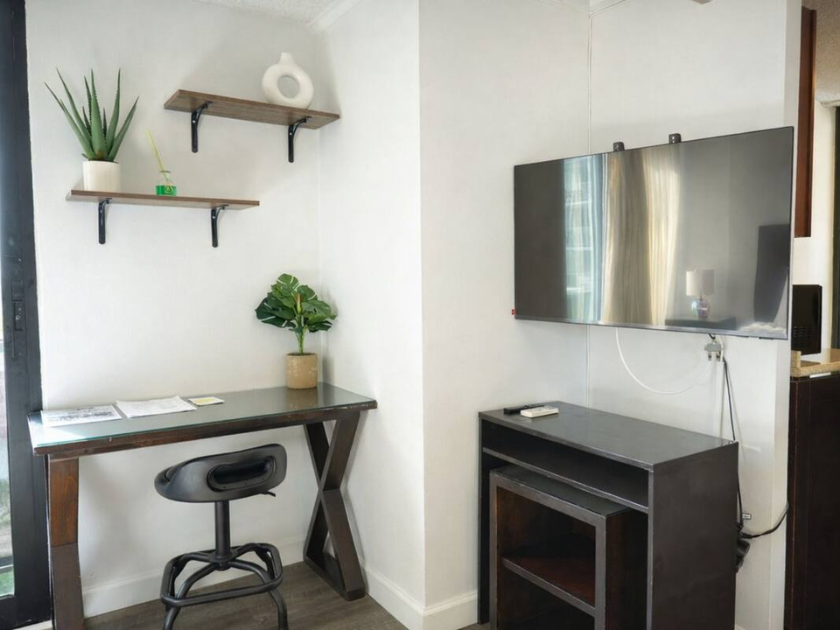 フルキッチンはありませんが、その分外食やテイクアウトを楽しみたい方、一人旅やカップルでのご滞在には十分な設備が整っています。