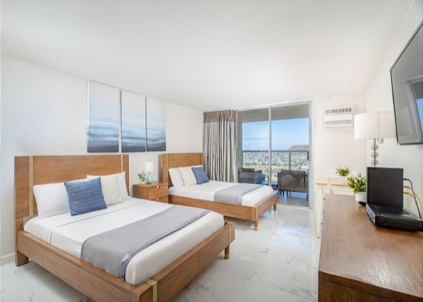フルサイズのダブルベッドが2台設置されており、最大3名様まで宿泊可能です。質の高いベッドリネンと快適なマットレスで、ハワイでの疲れをしっかりと癒すことができます。