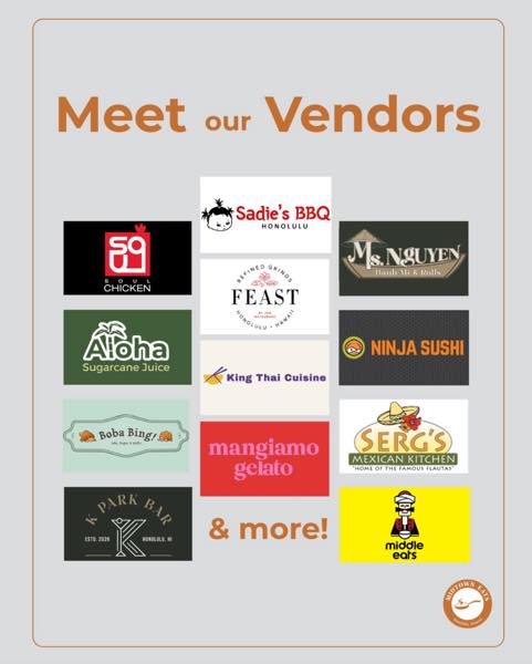 フードホール内には以下の飲食店がラインナップ。ローカルに人気のお店から、国際的な料理まで揃うユニークなフードホールとなっている。