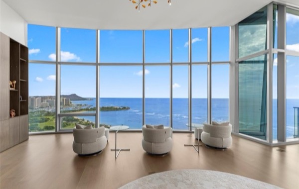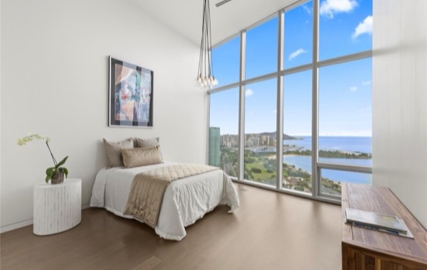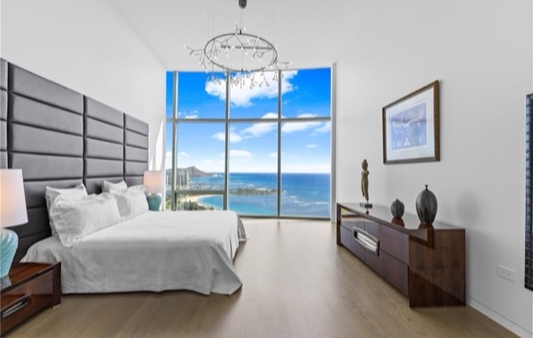大きなラナイからは、空に浮かび、海に溶けるようなダイナミックな景色を体感できます。ダイヤモンドヘッド、マジックアイランド、正面にはアラモアナビーチパーク、そしてサンセットまで美しく連なる景色を堪能できるユニットです。