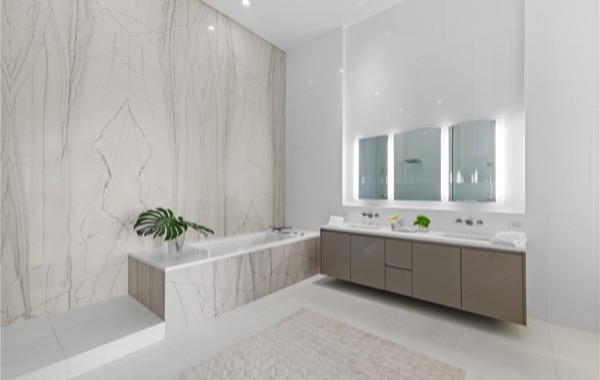 マスターバスルームは、大理石とオニキスの壁が印象的なホテルのスパのようなバスルームが完備されています。