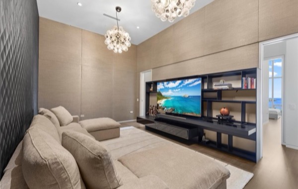 大型テレビを備えたメディアルームも作られていて、こちらは隠れ家的なくつろぎ方にぴったりな空間となっています。