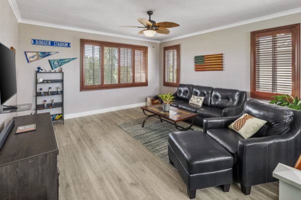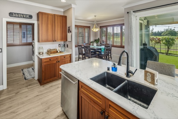 エバビーチは、ホノルル空港から25分、ホノルルの中心部から車で約30〜40分とアクセスが良く、通勤圏でありながらワイキキの喧騒とは一線を画す落ち着いた住宅エリアです。比較的新しいコミュニティも多く、この邸宅のように区画が整った戸建て住宅が中心。ビーチや公園、ドッグパークなども身近で、近年ショッピングモールやスーパーなど暮らしも充実してきたことから、ファミリー層や長期居住者からの人気が高まるエリアです。