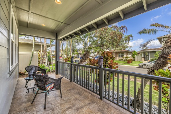 またフロント側にもポーチがあります。家の周辺を行き来するのは住民のみという静かで安心の環境だから、くつろぎスポットに。ご近所さんとのお付き合いも楽しそうです。