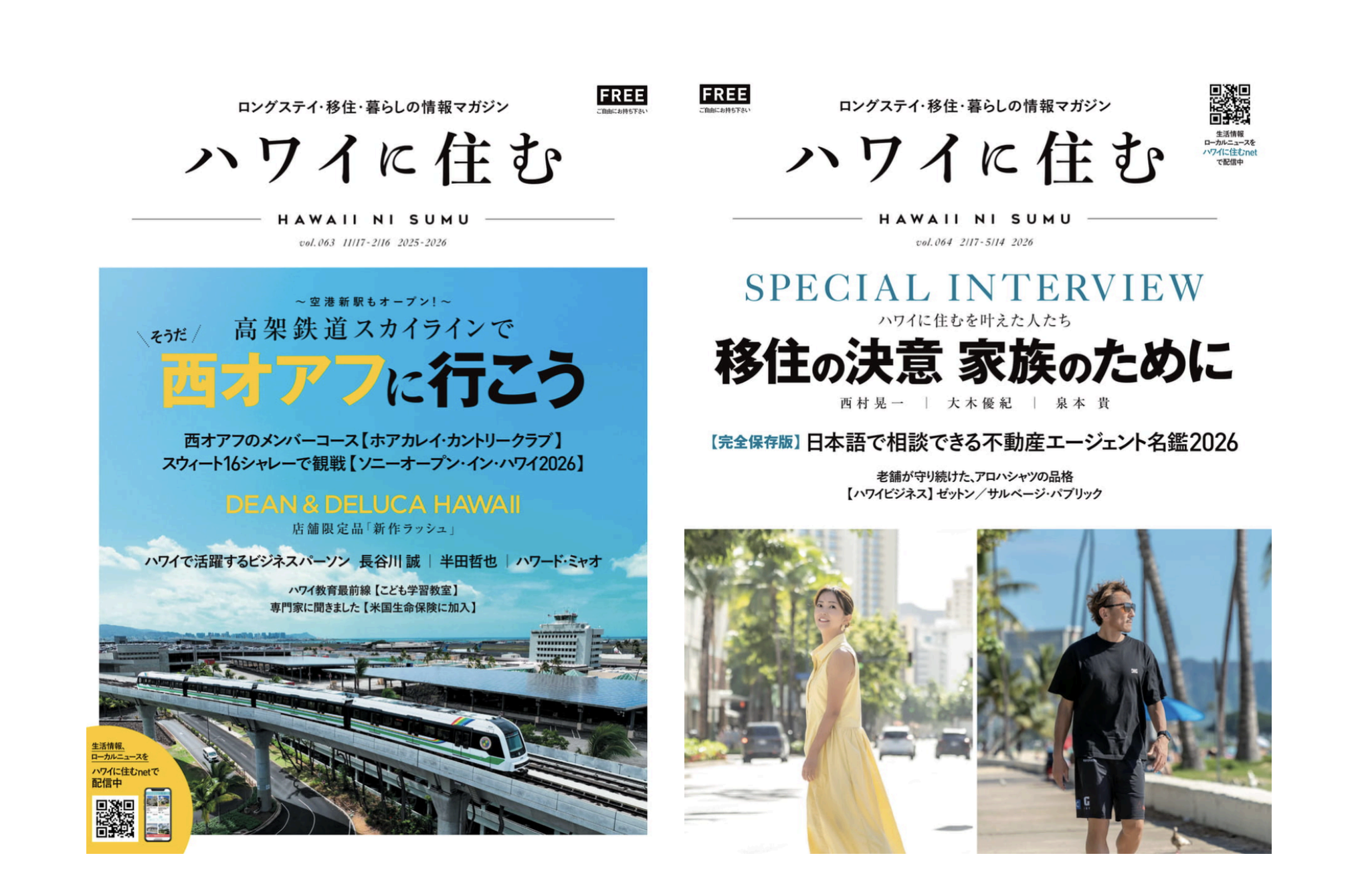●特典1:「ハワイに住む」マガジン最新号と前号をプレゼントハワイ現地でしか入手することのできない「ハワイに住む」マガジンの最新号と前号の2号を進呈。