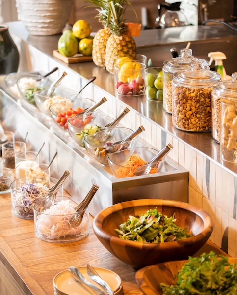 「Heavenly Hawaii Kai」では、朝から夜まで楽しめる All Day Menu を新たに導入。人気のローカルファームサラダバーは、ランチに加えて ディナータイムでも提供を再開した。