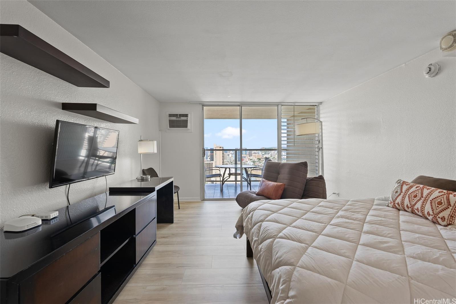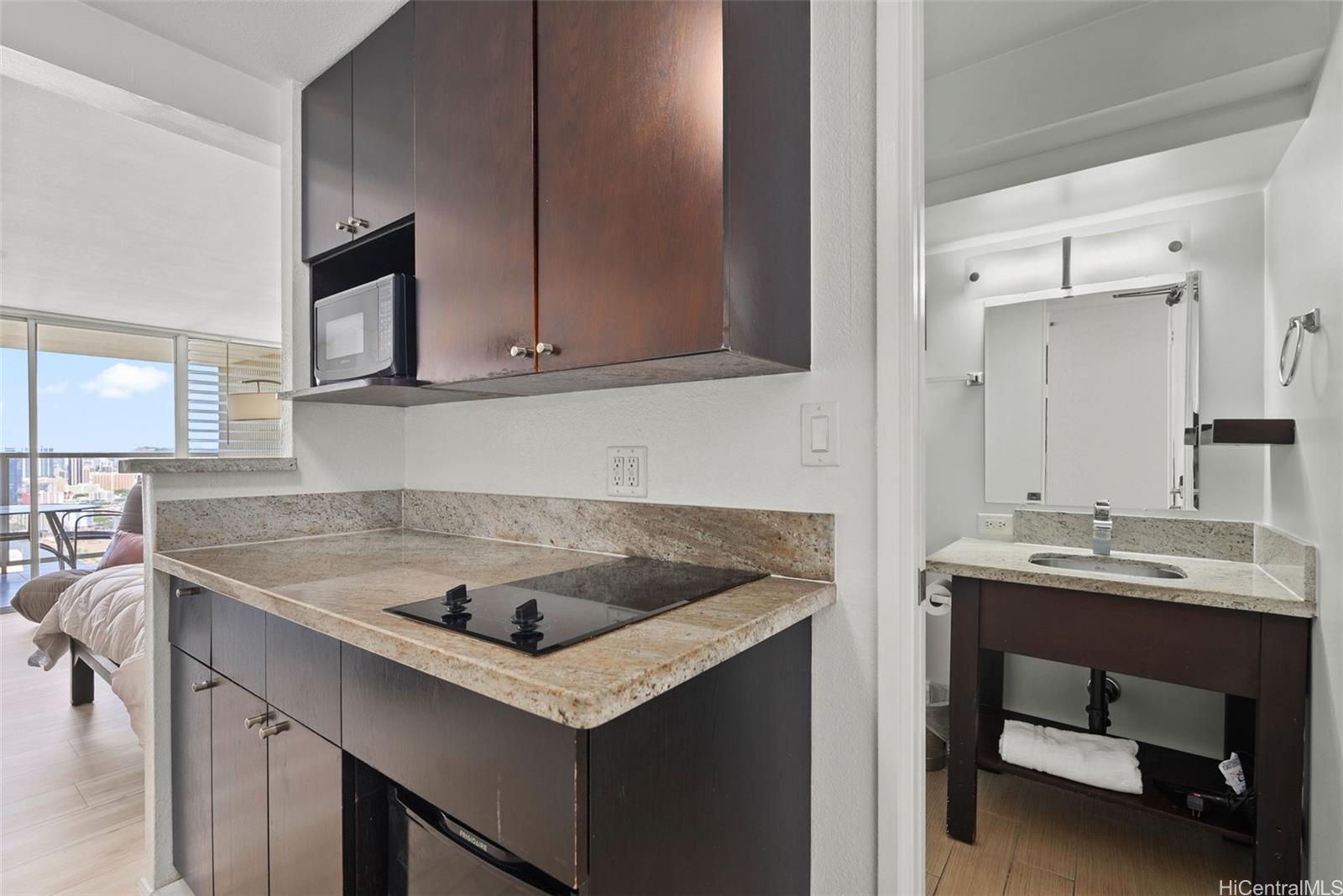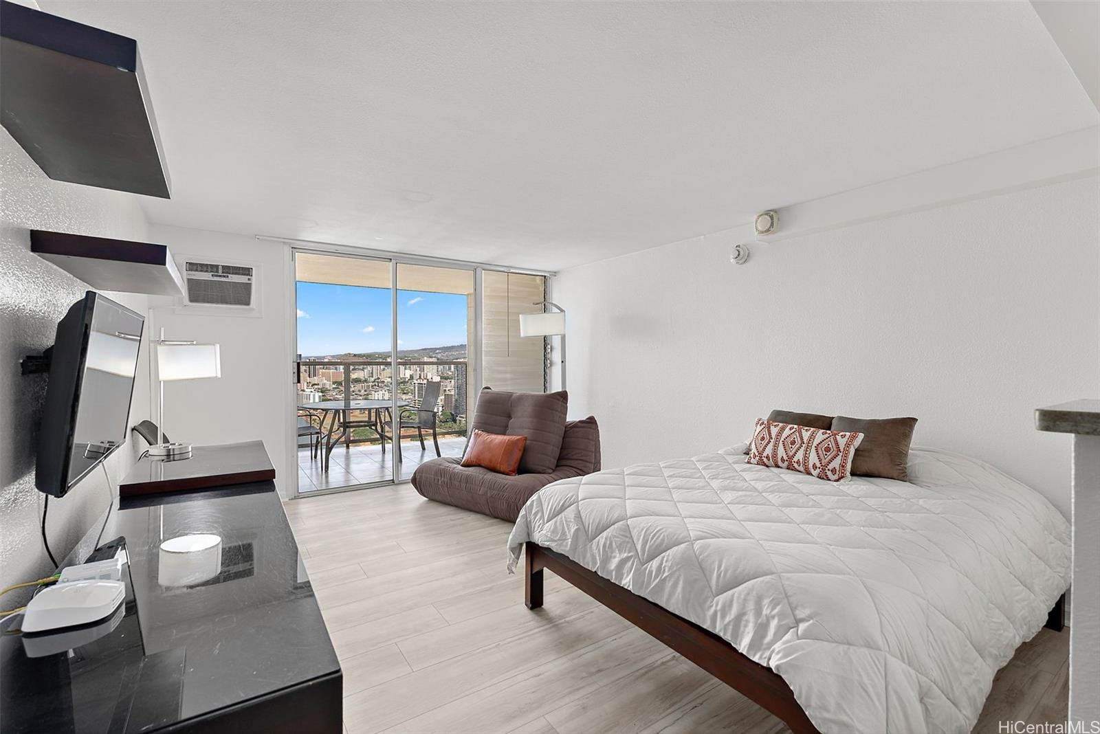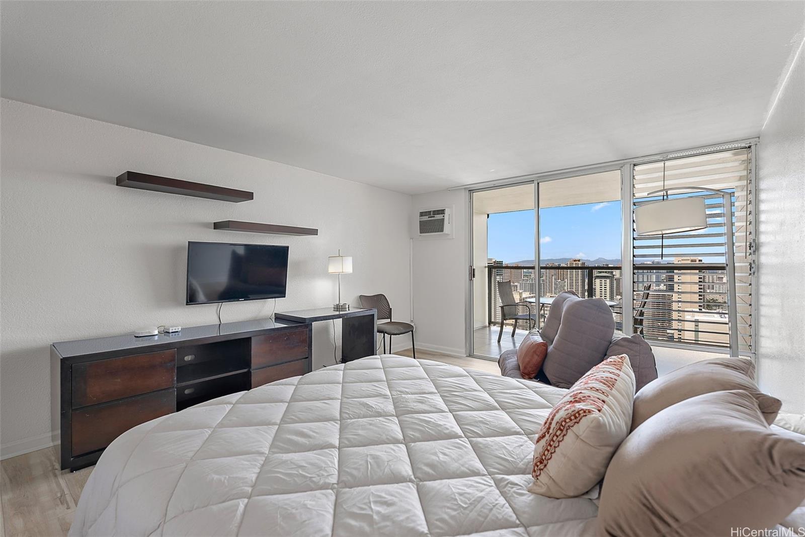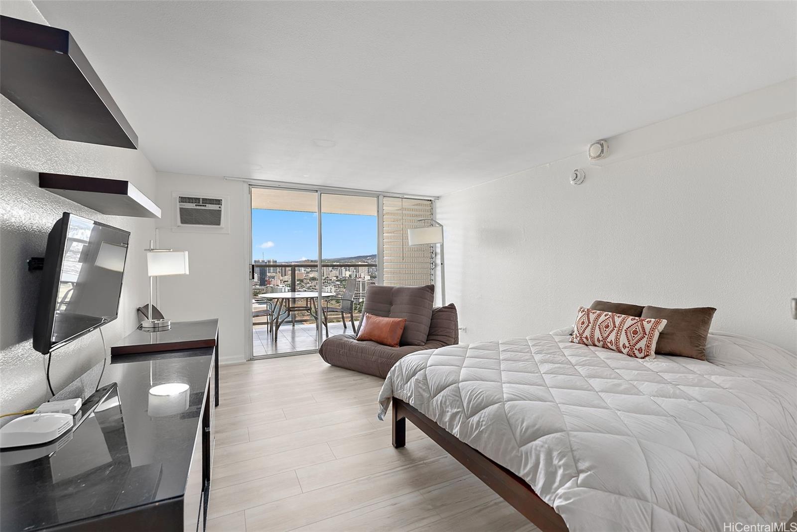 42階高層階のユニット!ビニール製のフローリングが新しく設置され、塗装も完了しました。この「04」スタックからは、アラワイ、ゴルフコース、そして山々の景色を一望できます。建物内には、スイミングプール、ホットタブ、サウナ、雑貨店、フィットネスセンター、セキュリティデスクを完備しています。ユニット内にはスプリンクラーシステムが設置されているので安心です。また、管理組合による配管工事も最近完了しました。ワイキキビーチからわずか2ブロック、インターナショナルマーケットプレイス、ロイヤルハワイアンショッピングセンター、そして数々の一流レストランやショップにも近接しています。活気あふれるこのリゾート地で、楽園のような空間を手に入れるチャンスをお見逃しなく。このユニットはホテルのレンタルプール内ではありません。