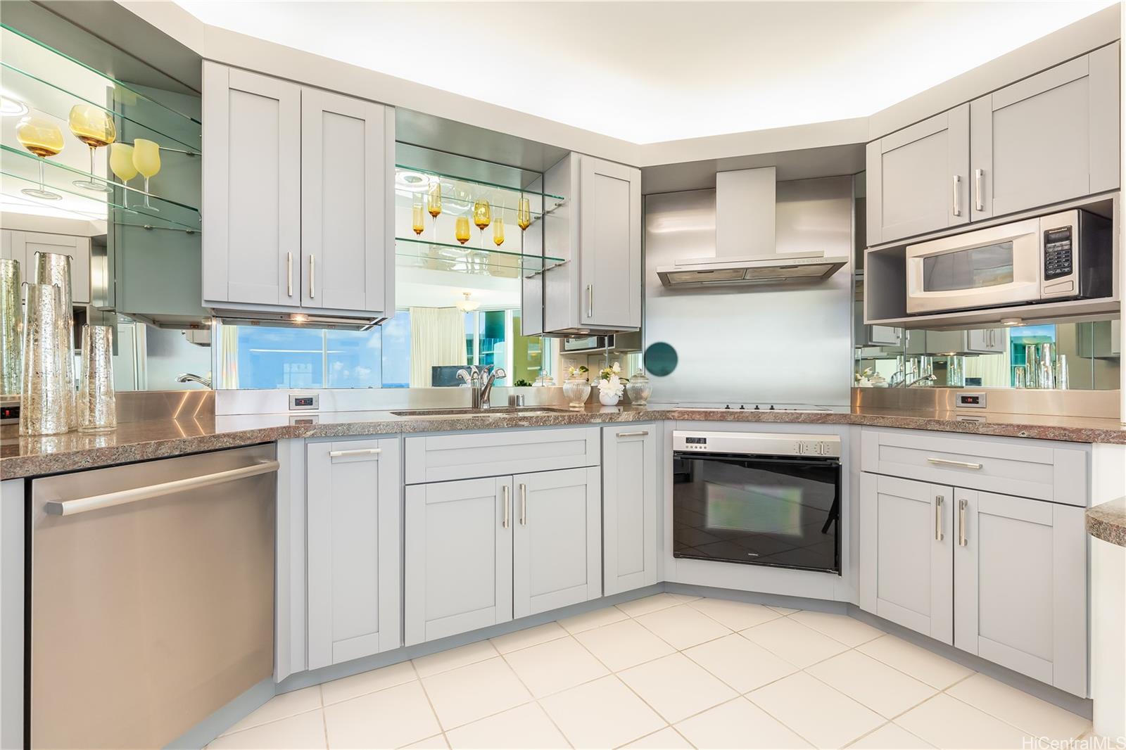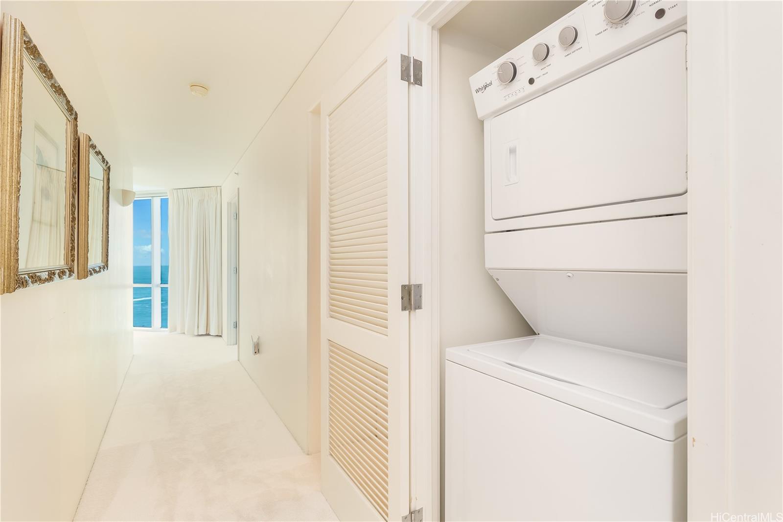Enjoy expansive views of Diamond Head and the Pacific Ocean from the comfort of your living room or lanai. The primary bedroom features two closets, including a spacious walk-in. This unit includes two parking stalls conveniently located on the same level as the lobby for easy access. Hawaiki Tower is ideally situated across the street from Ala Moana Shopping Center and just a short walk to Ala Moana Beach Park.