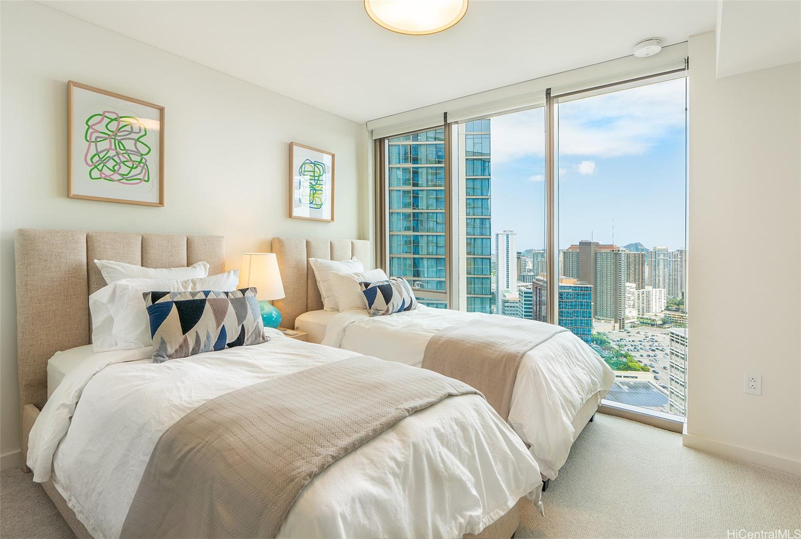 スカイ・アラモアナ・ウエストで、ワンランク上のアイランドライフをお楽しみください。高層階に位置する希少な1階建てのこの人気の角部屋レジデンスは、床から天井まで届く大きな窓とプライベートラナイを備え、海、ダイヤモンドヘッド、街、港、そして山々の雄大な景色を一望できます。オープンコンセプトのレイアウトは、洗練された仕上げと高級家電を備えたモダンなキッチンに加え、ウォシュレットなどの充実した設備を備えています。上質な家具とキッチン用品がセンス良く配置されたこの物件は、すぐに入居可能で、アイランドライフをすぐに始めることができます。居住者は、プール、フィットネス施設、スパなどを含むホノルル最大級のアメニティデッキをご利用いただけます。アラモアナセンター、ビーチ、レストラン、エンターテイメントエリアにも近く、都会の利便性とリゾートライフが融合した理想的な立地です。