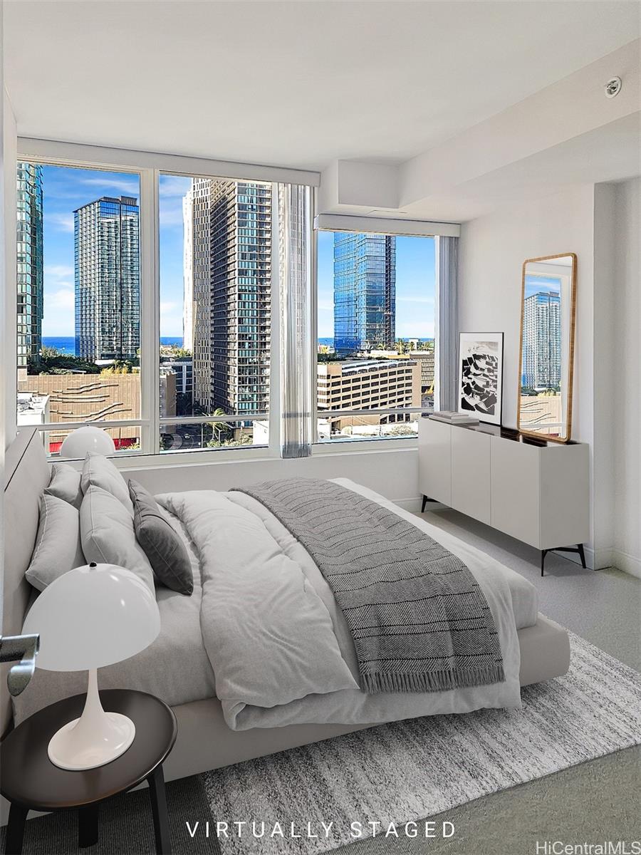 カカアコのパシフィカ・ホノルルにある、ベッドルーム1室、バスルーム1室、書斎、駐車場1台を備えた、シティビュー、オーシャンビュー、そしてサンセットビューの物件です。バス路線沿いの好立地で、ホールフーズ、アラモアナセンター、ブレイズデル、そしてワード/カカアコ地区の多くのショップやレストランまで徒歩圏内です。建物内にはチャイズと道楽寿司があります。建物はペットフレンドリーで、プラザパークにはペットを連れて入ることができます。ペットの飼育に関する制限がありますので、ハウスルールをご覧ください。温水プールとホットタブ、バーベキューエリア、2つのシアター、サウナ、パーティーパビリオン、セキュリティ付き駐車場など、充実したアメニティをご用意しています。