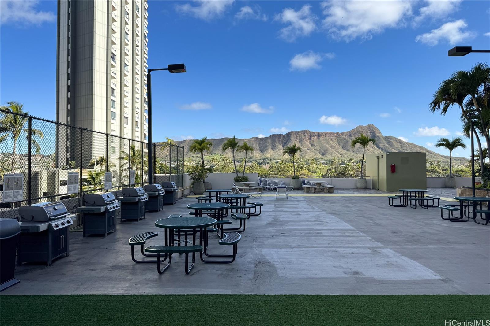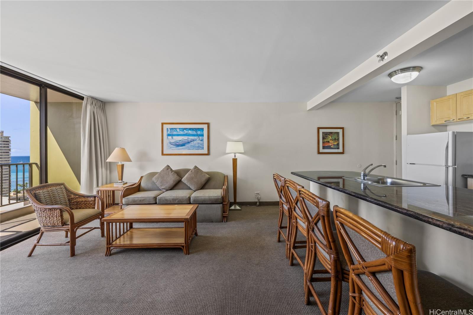Discover the perfect opportunity to own a highly sought-after 1-bedroom unit in the popular Waikiki Sunset! This fully furnished hotel unit boasts the largest 1-bedroom floor plan, featuring a lanai and an open living/kitchen layout. Enjoy partial ocean and Diamond Head views! The unit is part of the hotel rental program with Aston Waikiki Sunset and has a NUC (Non-Conforming Use Certificate). Recent hotel upgrades in 2019 include new carpet, fresh paint, and the removal of popcorn ceilings, ensuring a modern and comfortable living space. The building offers great amenities such as BBQ facilities, a pool, community laundry, an exercise room, and 24-hour security. Located in a prime area, you'll be close to the world-famous Waikiki Beach, Kapiolani Park, the zoo, restaurants, shopping, and much more.